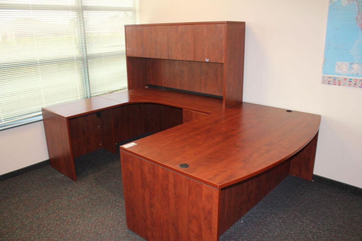 CHERRY U-SHAPED EXECUTIVE DESK WITH HUTCH