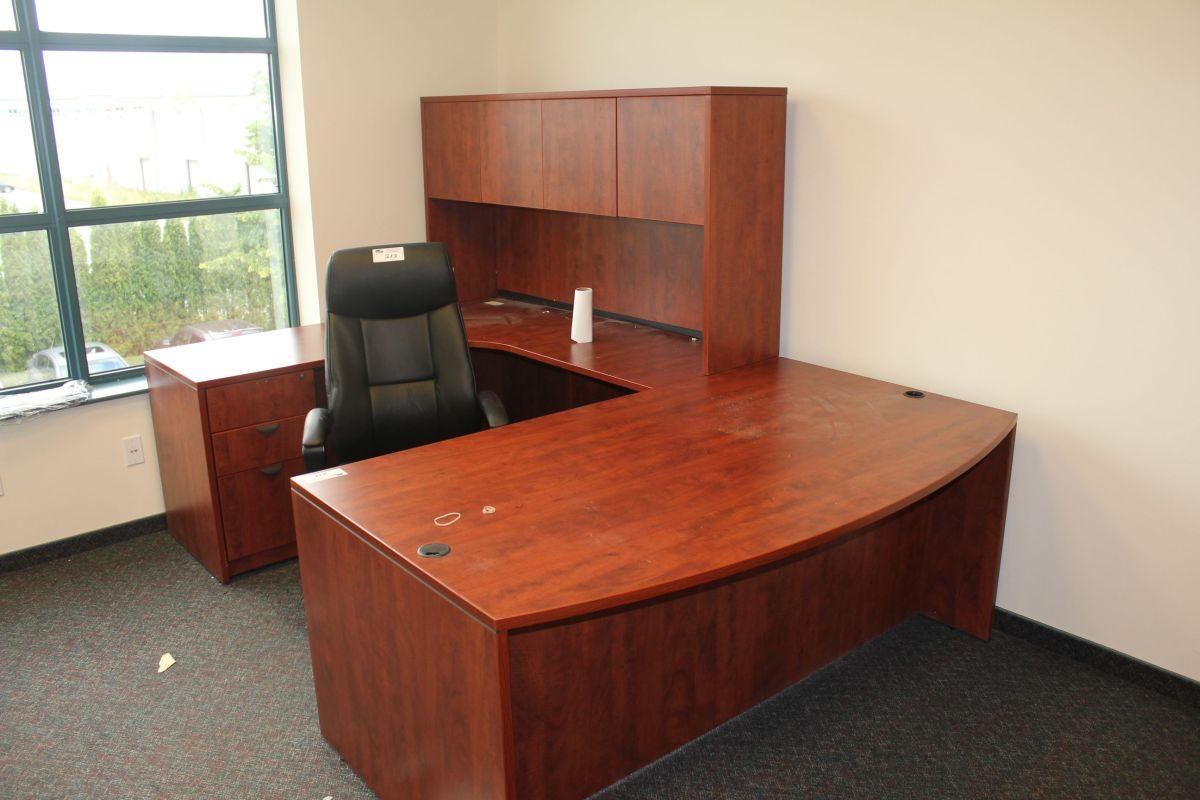 CHERRY U-SHAPED EXECUTIVE DESK WITH HUTCH