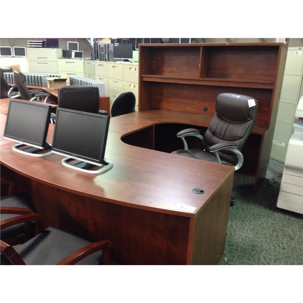 CHERRY U-SHAPED EXECUTIVE OFFICE SUITE WITH HUTCH