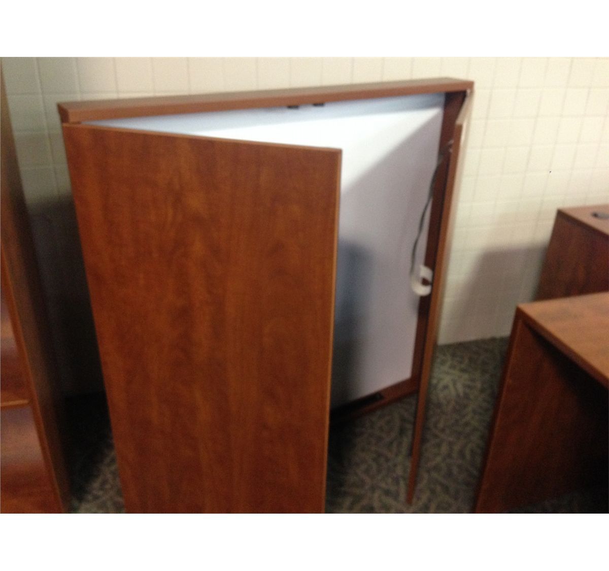 CHERRY WALL MOUNT 2 DOOR MAGNETIC WHITE BOARD CONFERENCE CABINET