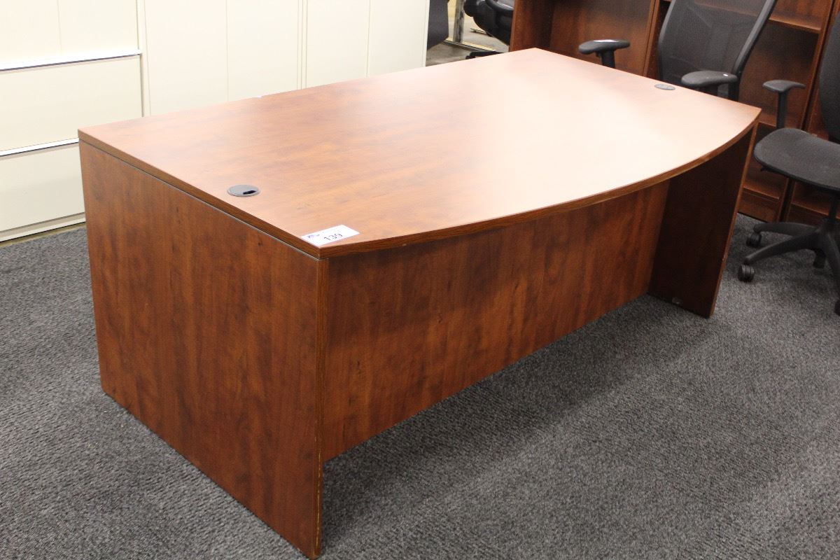 CHERRY WOOD LAMINATE EXECUTIVE BOW FRONT DESK