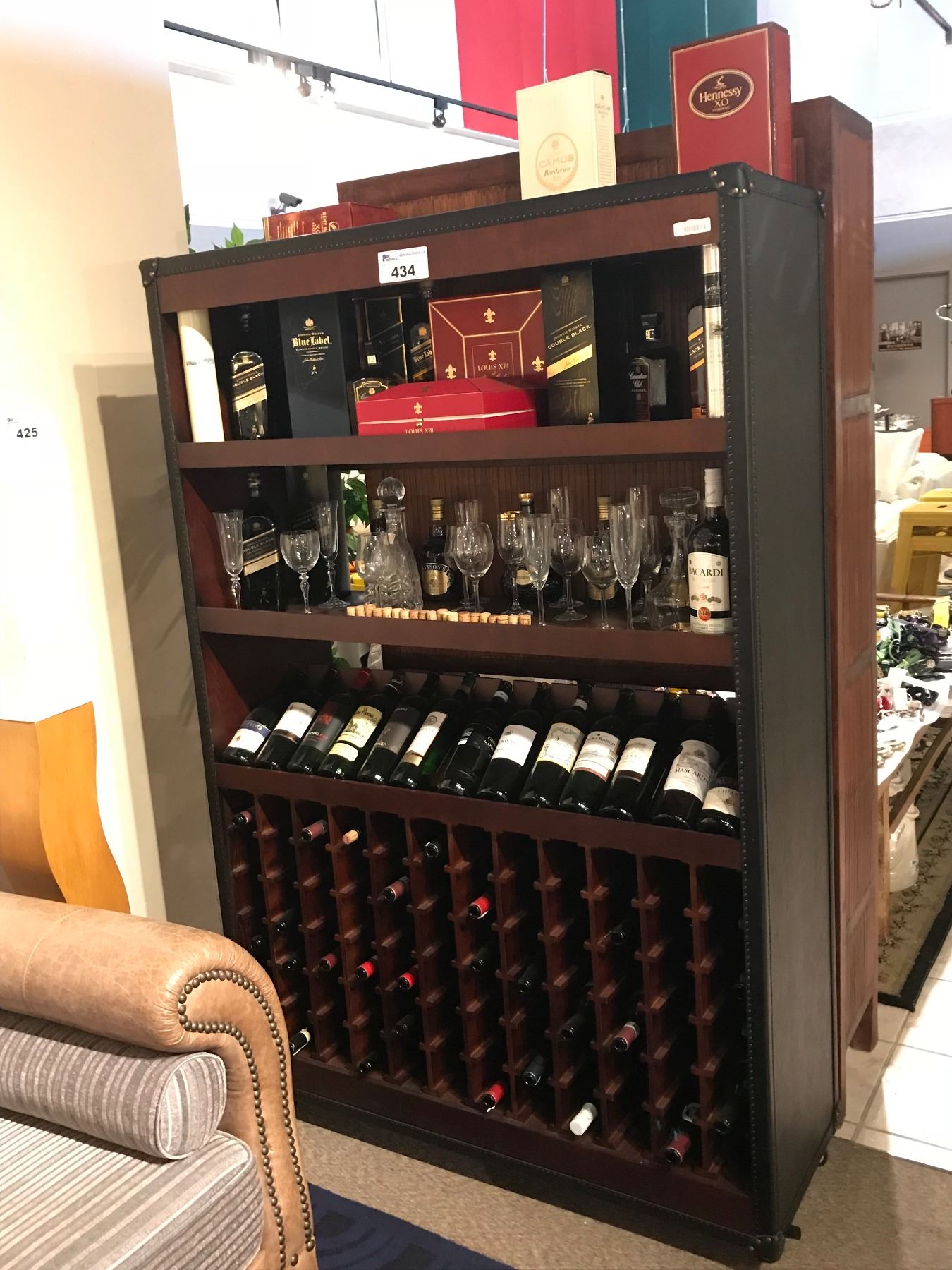 CHERRY WOOD & LEATHER MOBILE BAR CABINET