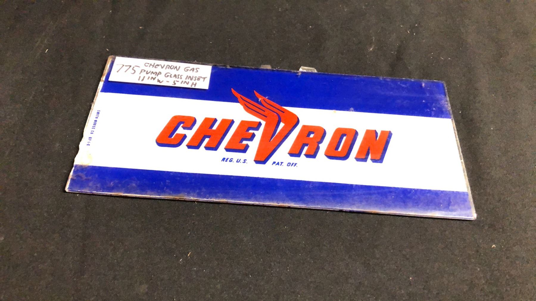 CHEVRON GAS PUMP GLASS INSET W11" X H5"
