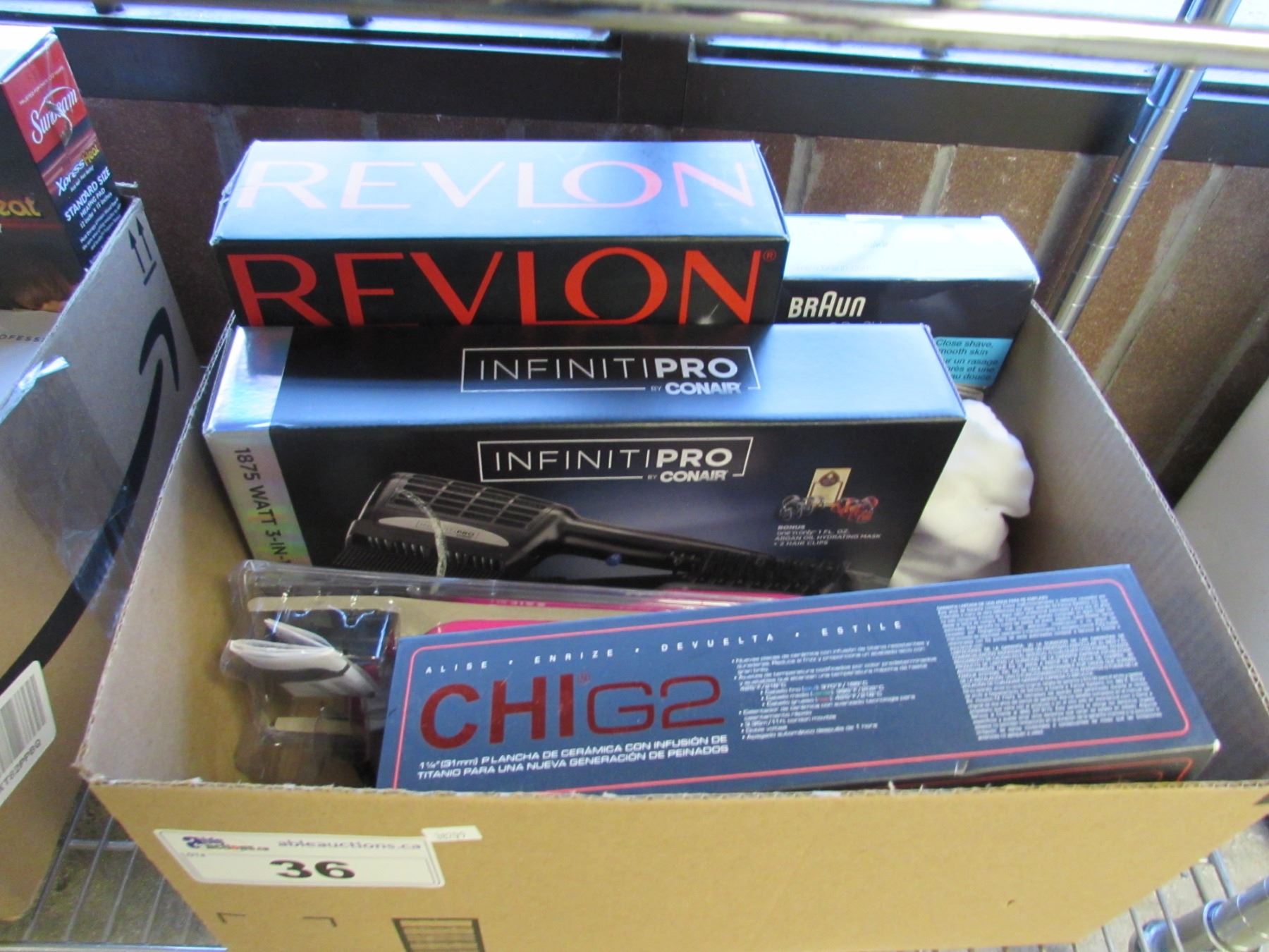 CHI G2 HAIR STRAIGHTENER, PHILIPS BIKINI GENIE SHAVER, CONAIR INFINITI PRO HAIR STYLER, BRAUN 3 SERIES SHAVER, REVLON SALON HAIR DRYING BRUSH, 3-IN-1 STRAIGHT WAVES