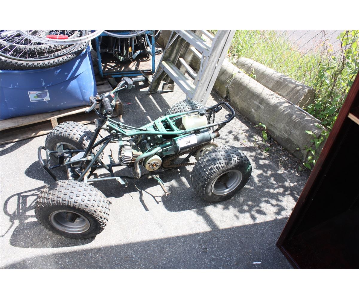 CHILD SIZE ATV QUAD; FRAME, MOTOR, WHEELS - NO BODY SHELL OR SEAT