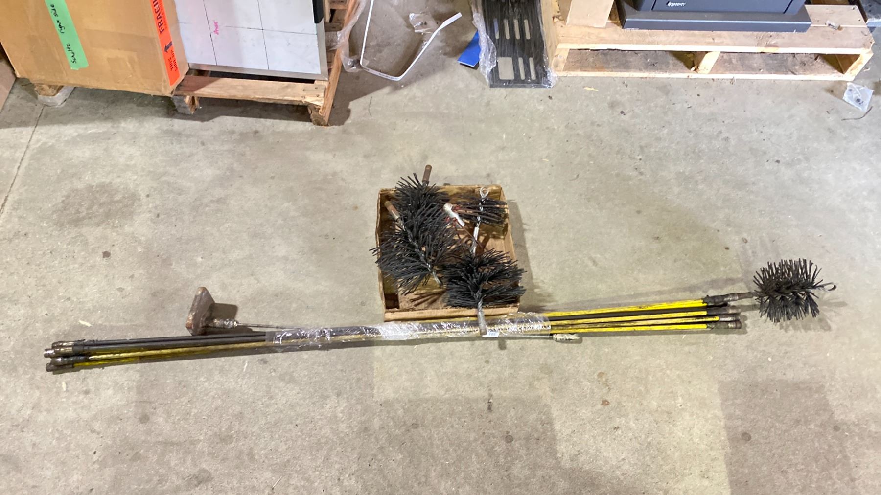 CHIMNEY SWEEP KIT. WITH 6 BRUSHES ASST SIZES AND 10 RODS TOTALING 40'