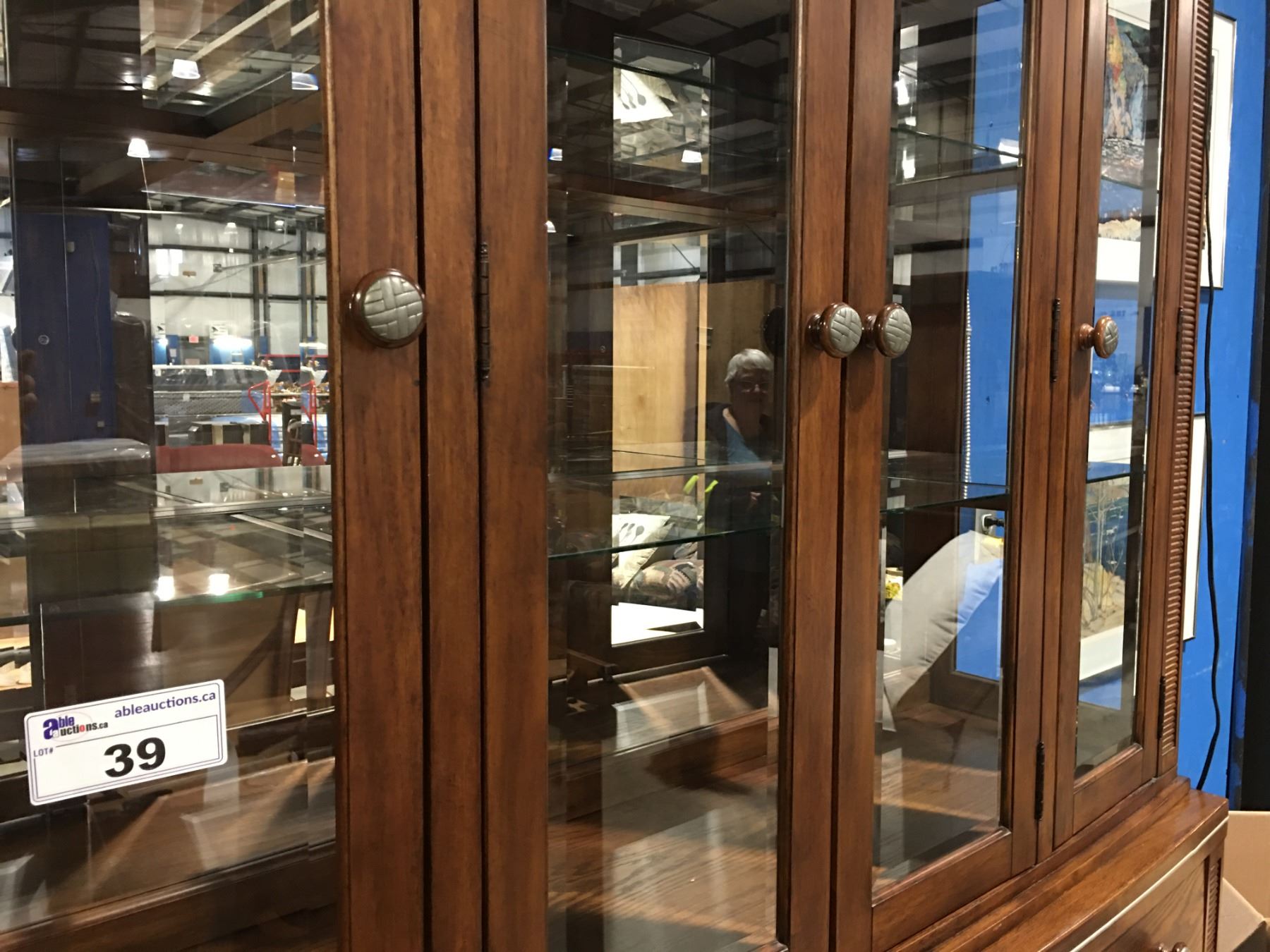 CHINA CABINET & HUTCH 4-DOOR & 3 DRAWERS, BEVELED GLASS, LIGHTED & MATCHING BUFFET