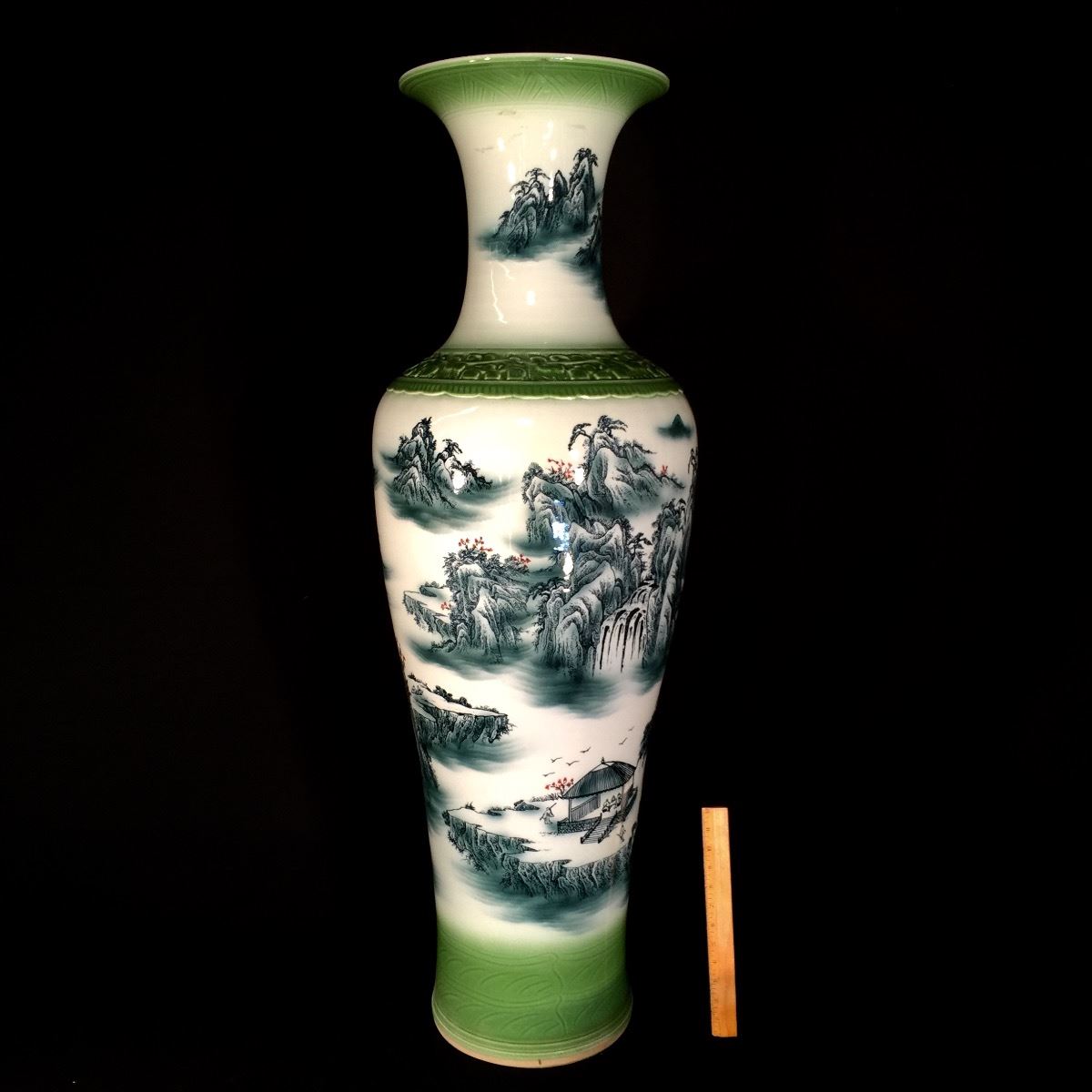 CHINESE HAND PAINTED FAMILLE VERTE STYLE VASE, 48'' VASE