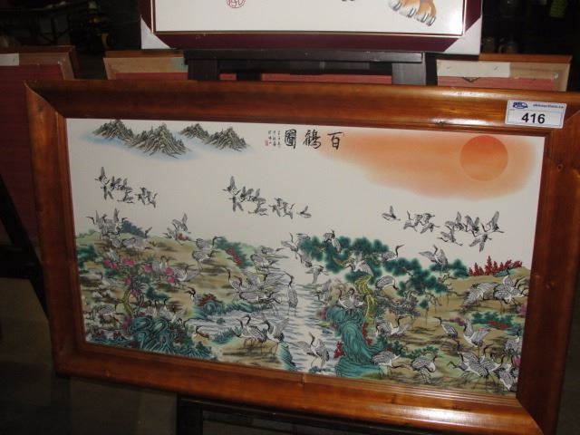 CHINESE PORCELAIN PLAQUE OF CRANES IN RIVER