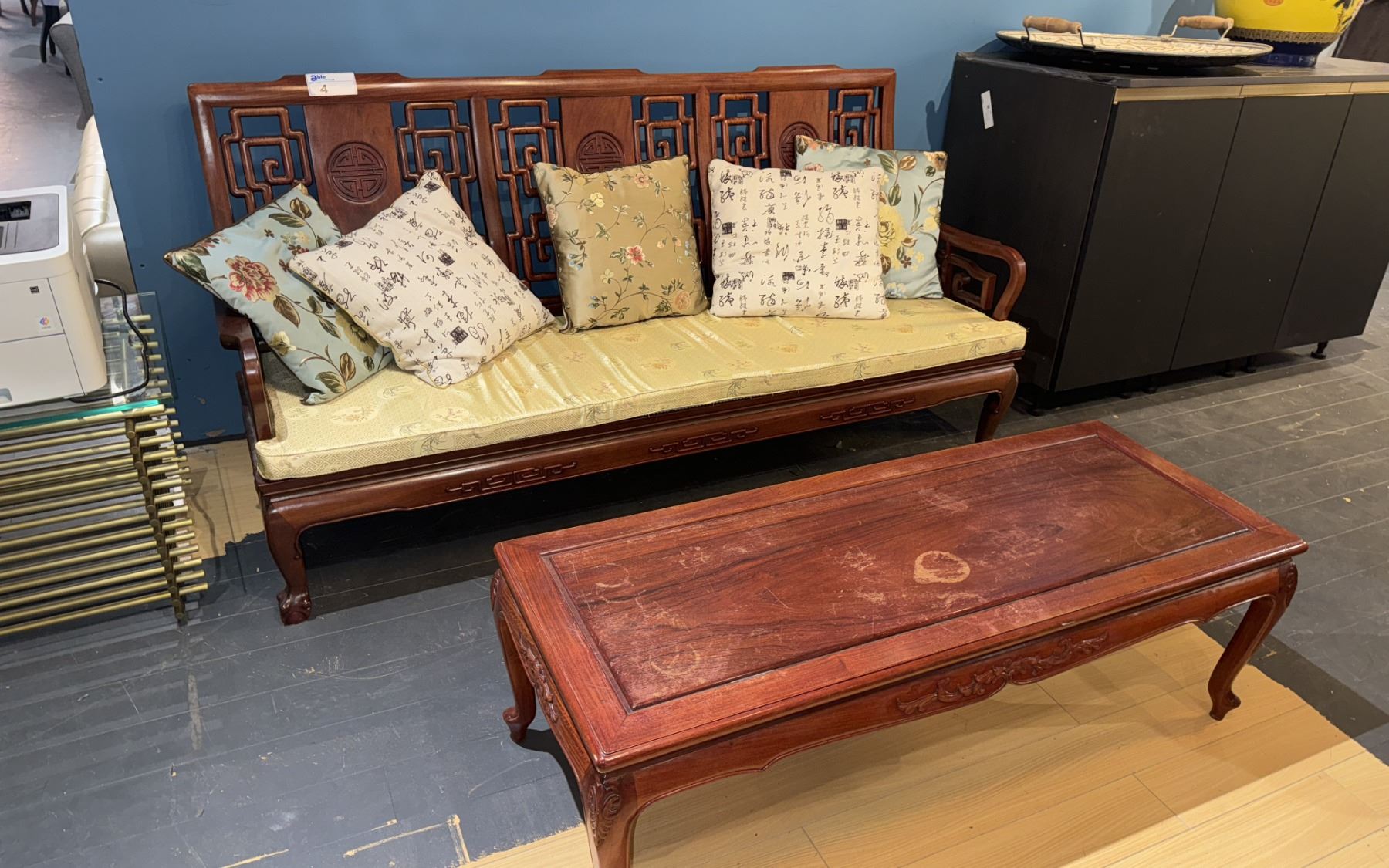 CHINESE ROSEWOOD SOFA AND COFFEE TABLE SET