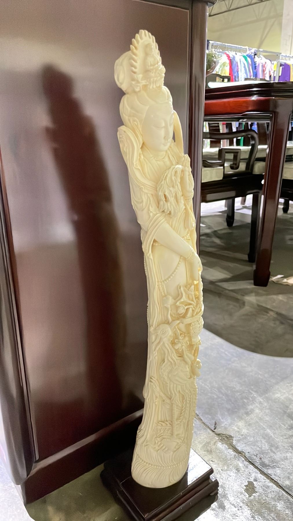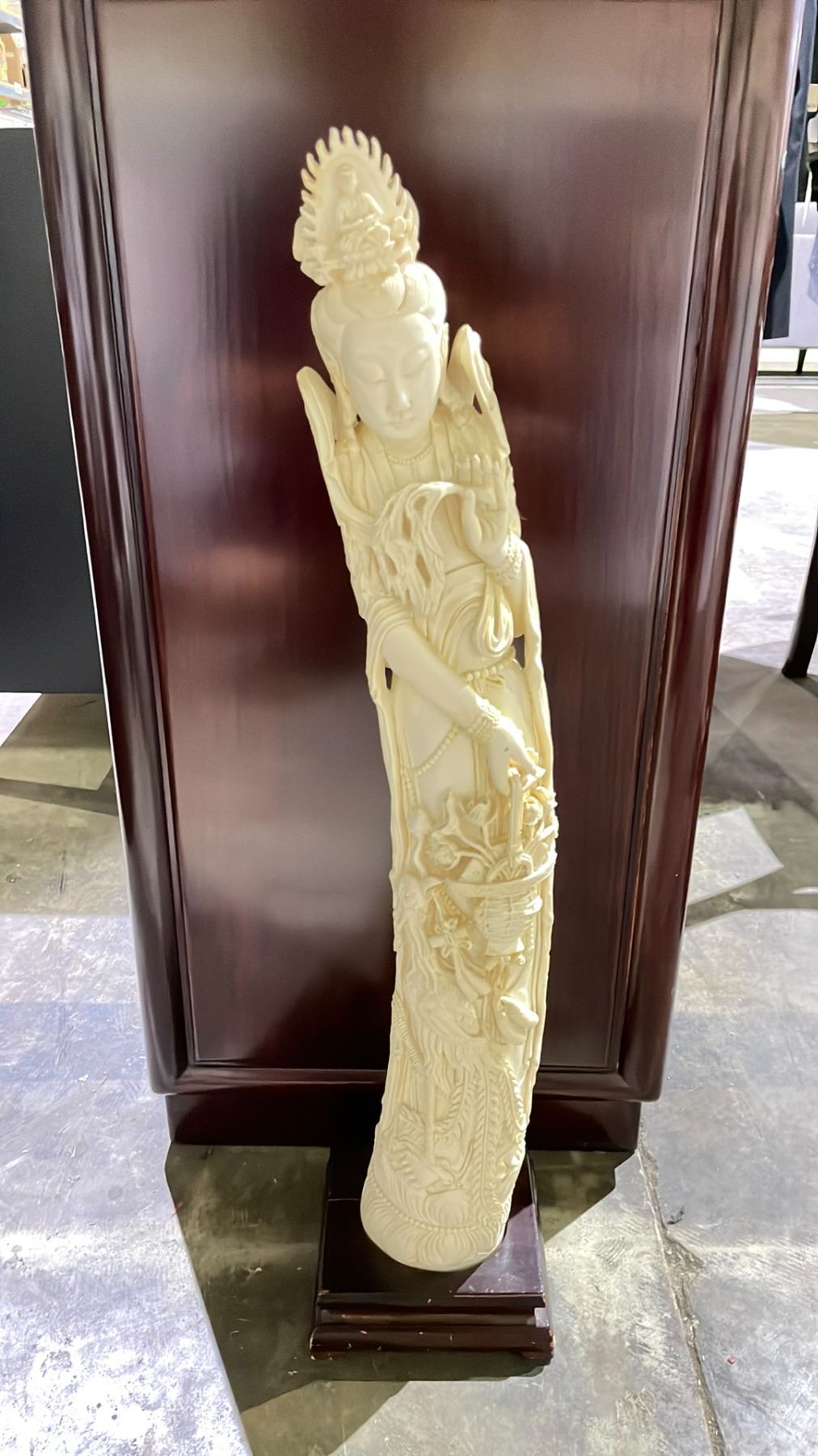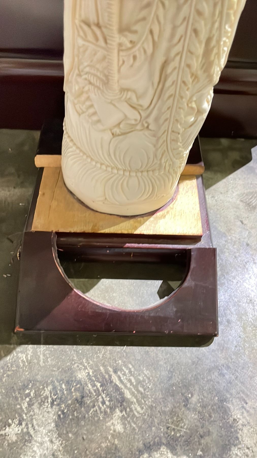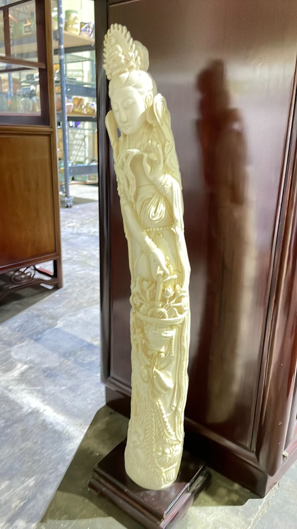 CHINESE WOMAN CARVING ON STAND *STAND DAMAGE*