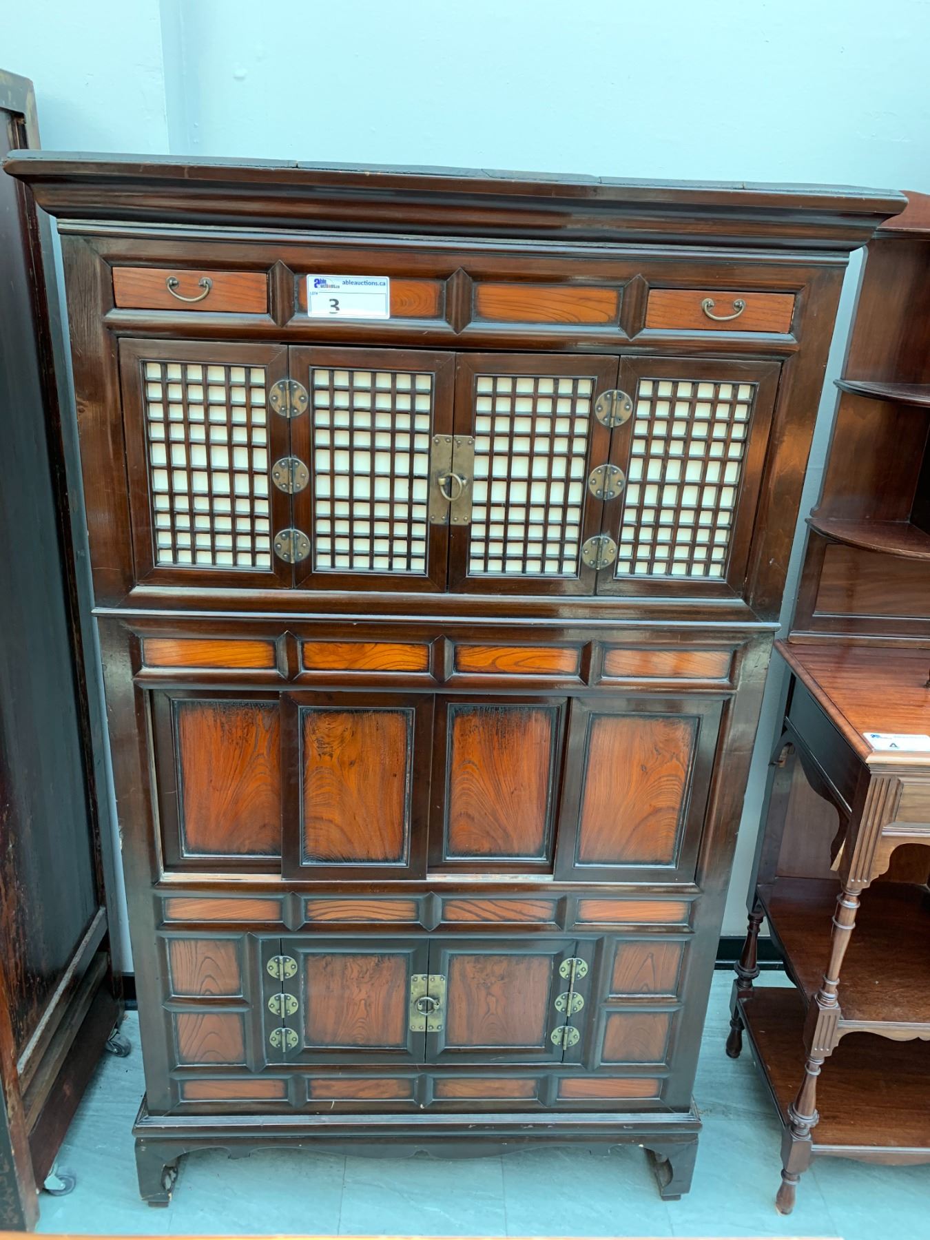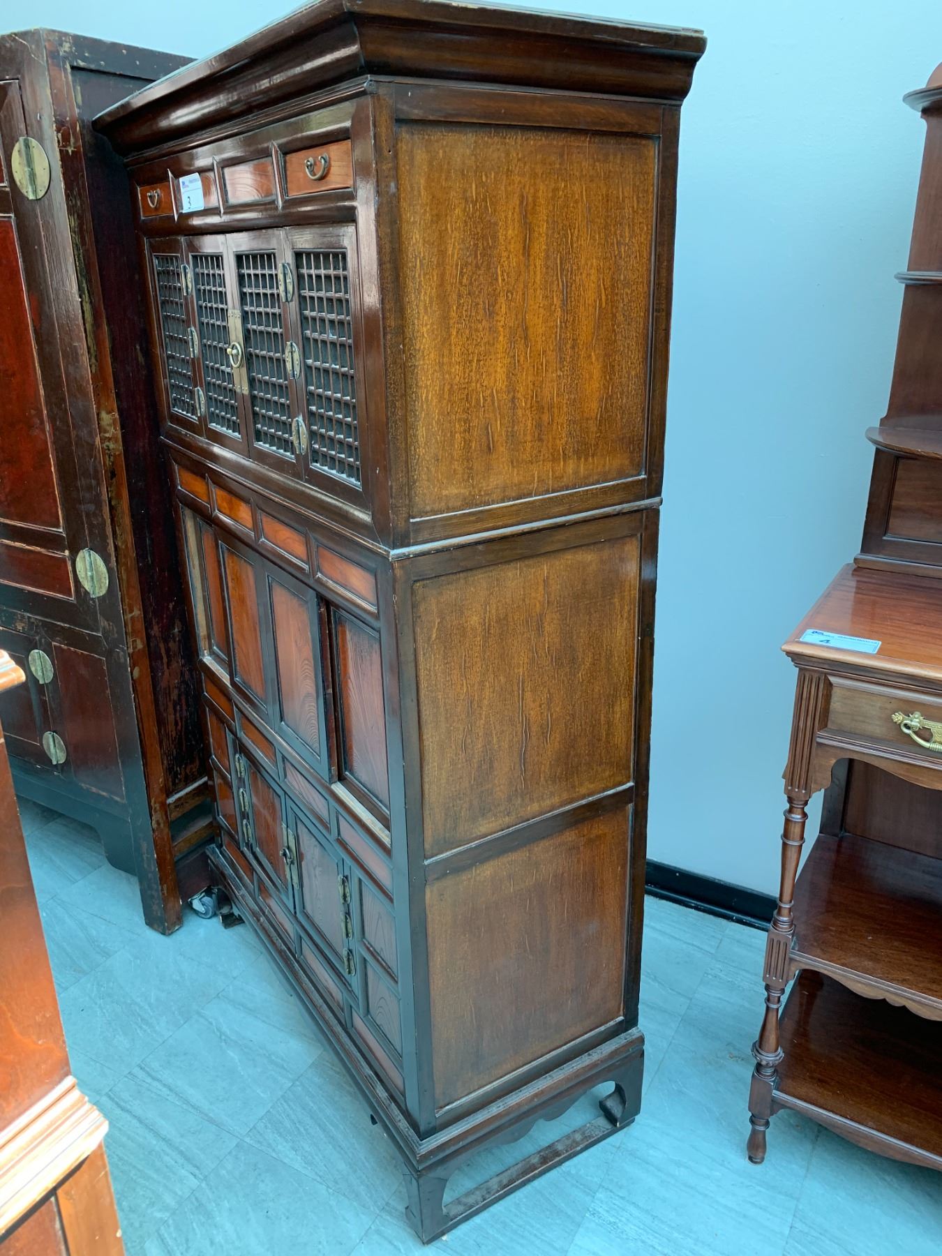 CHINESE WOOD 5 DOOR 2 DRAWER CABINET APPROX 69"X38"X17"