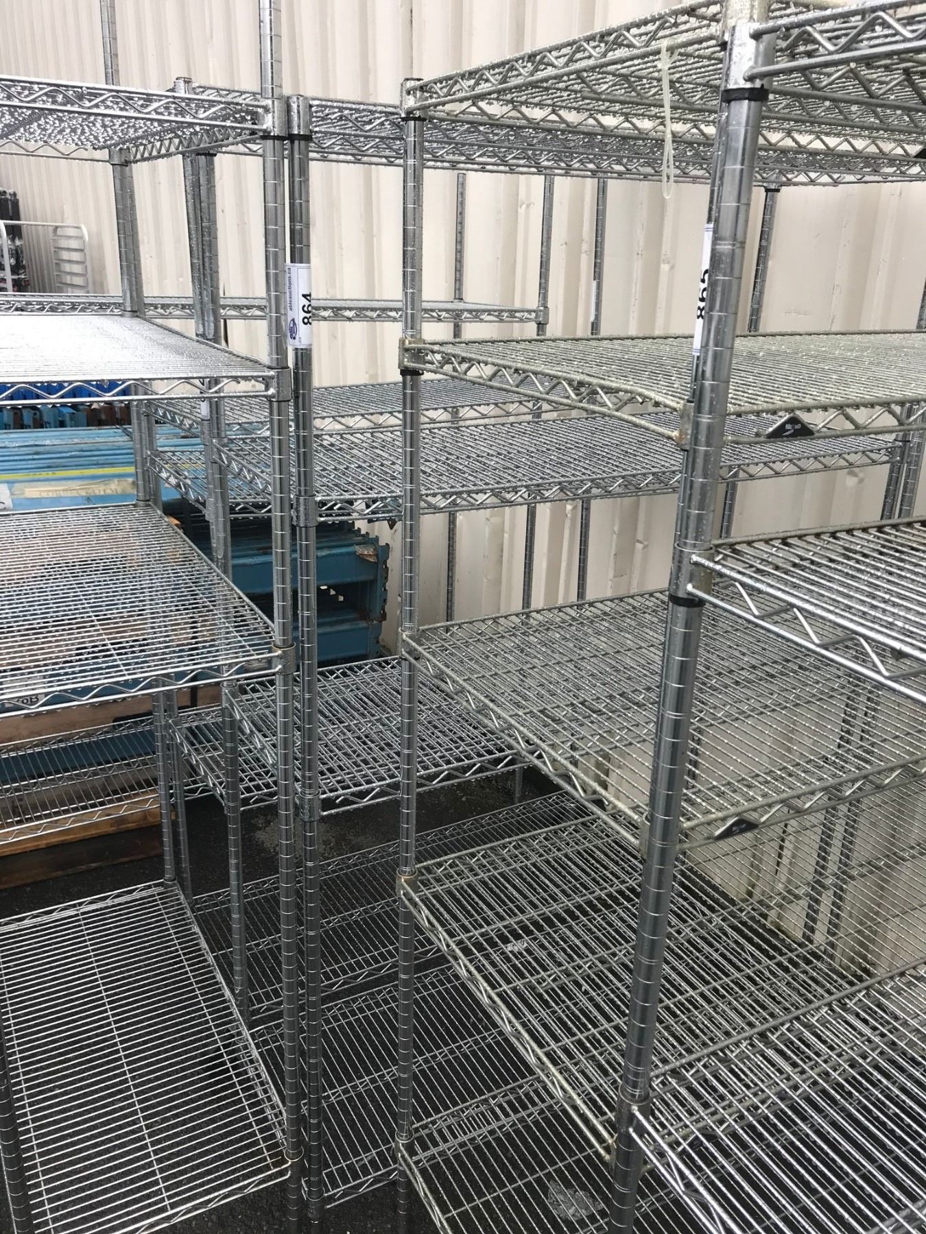 CHROME 4 TIER "METRO" RACK SYSTEM (NEEDS MINOR REPAIR) 18"D X 47"W X 73"H