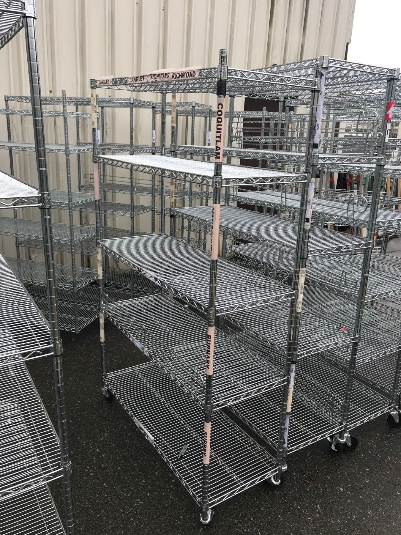 CHROME 5 TIER MOBILE "METRO" RACK SYSTEM (NEEDS MINOR REPAIR) 18"D X 47"W X 77"H