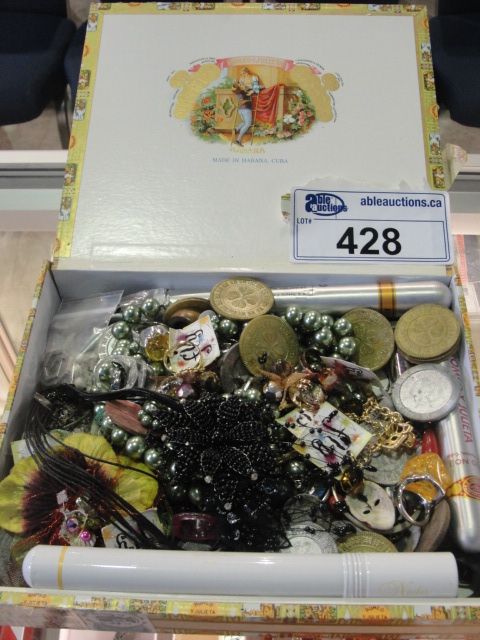 CIGAR BOX FILLED WITH MISC JEWELLERY