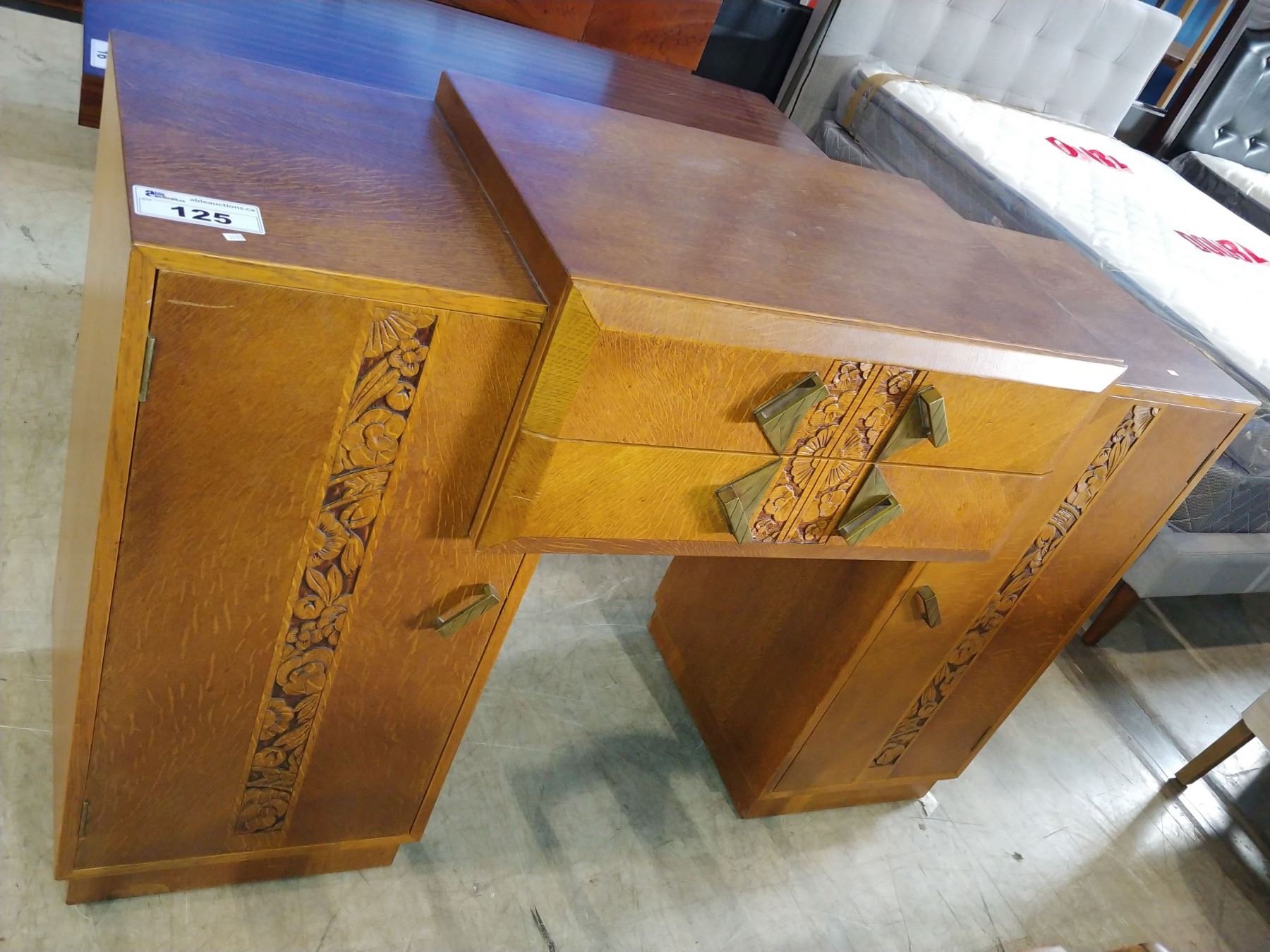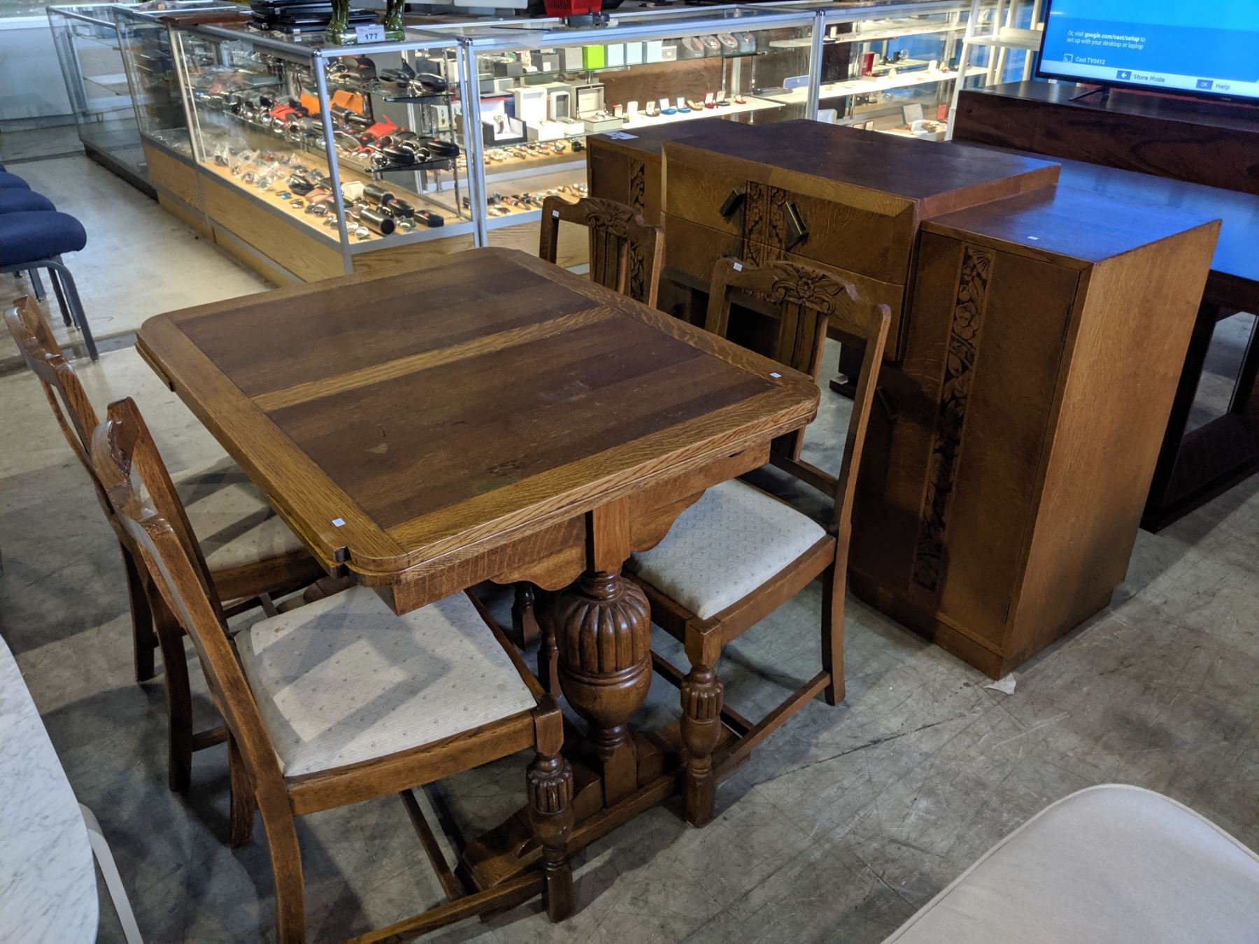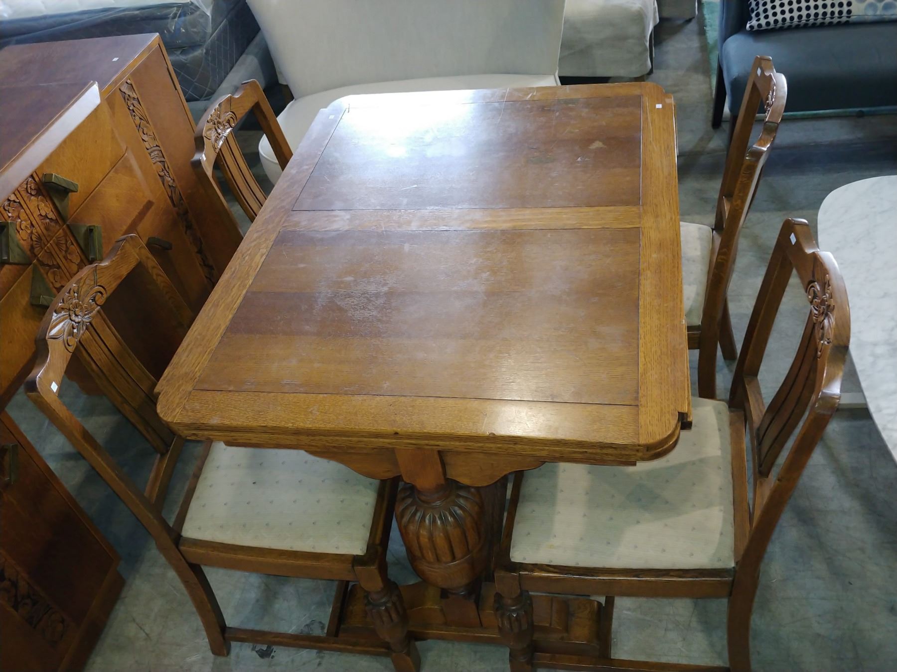 CIRCA 1940S OAK BUFFET WITH DRAW LEAF TABLE AND 4 CHAIRS