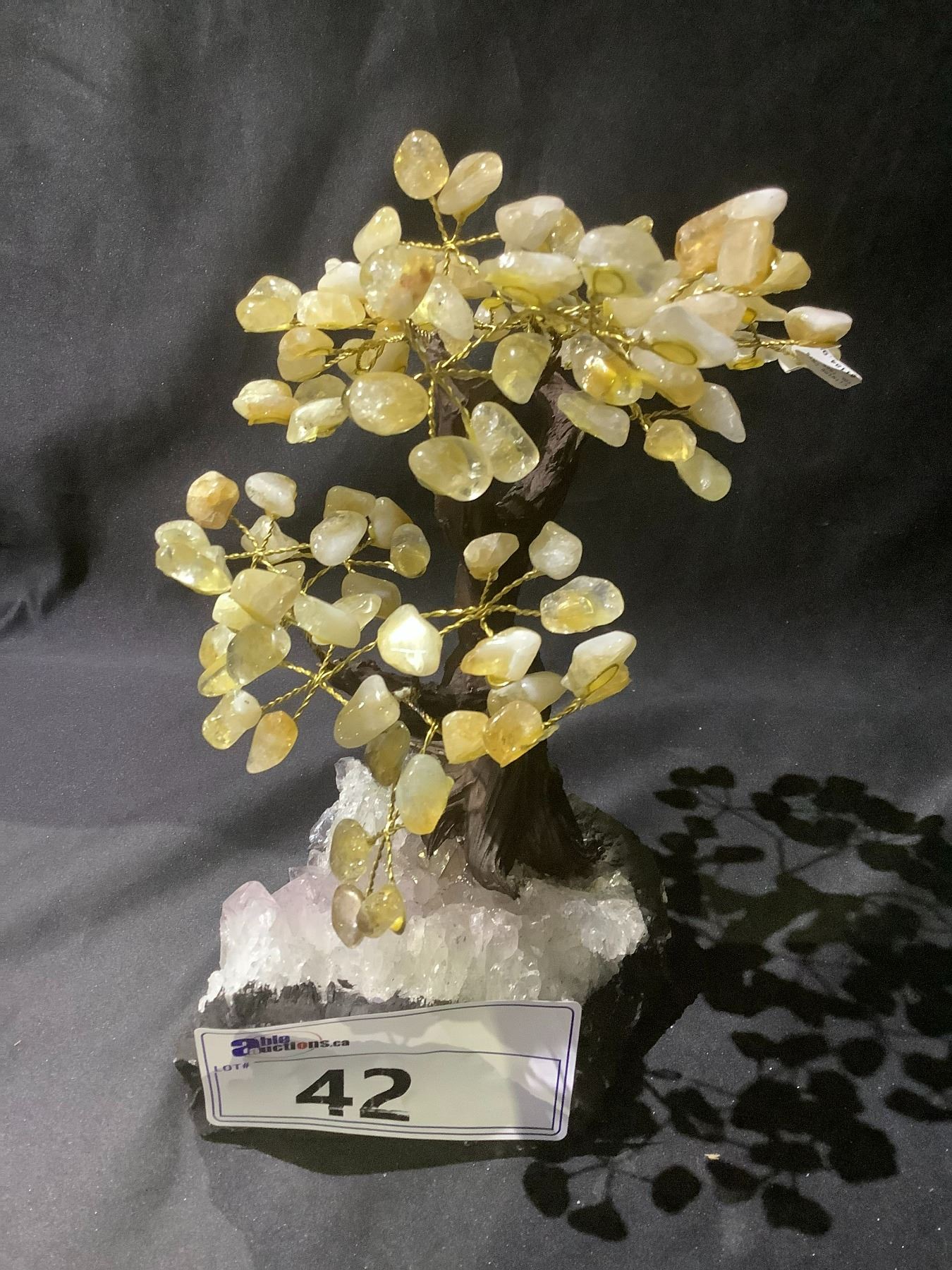 CITRINE CRYSTAL TREE ON AMETHYST GEODE BASE APPROX 10" TALL- RETAIL $1194.98