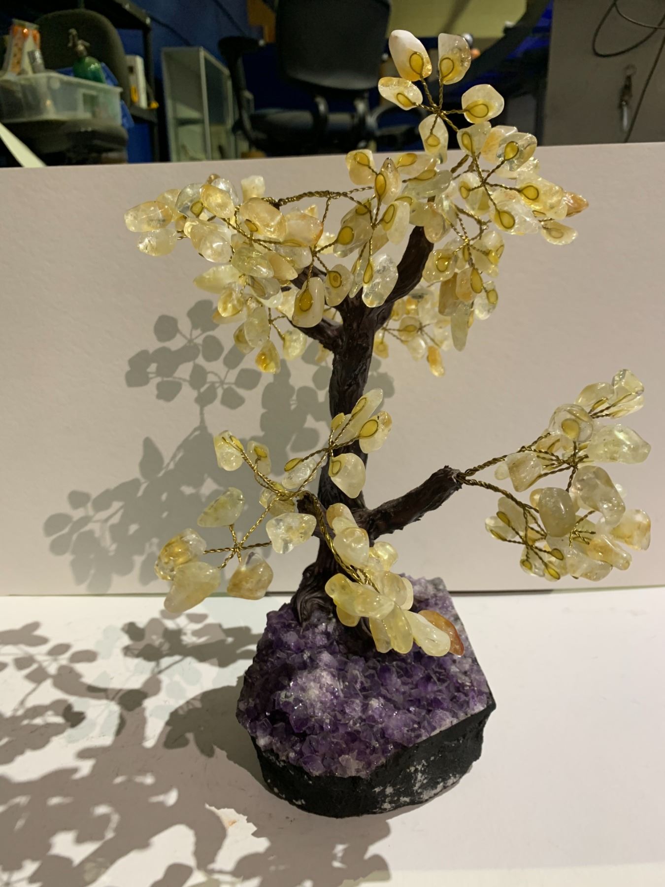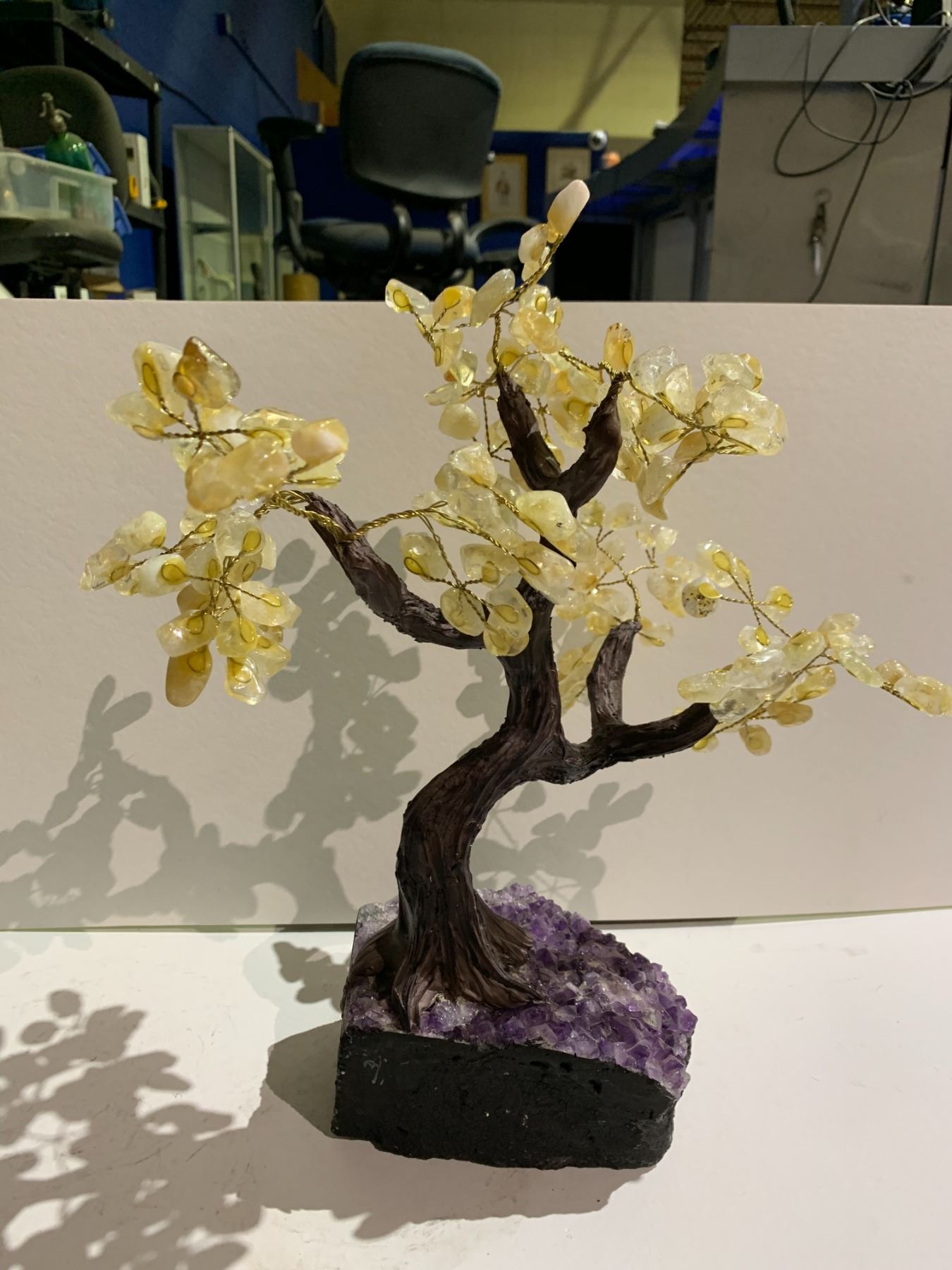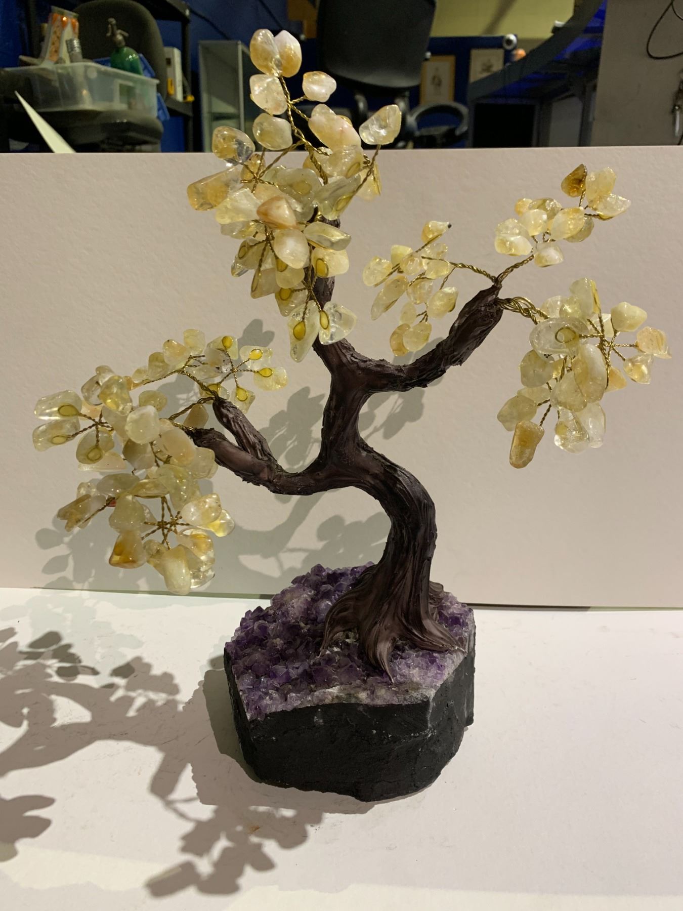 CITRINE TREE ON AMETHYST BASE 14" RETAIL $2,800