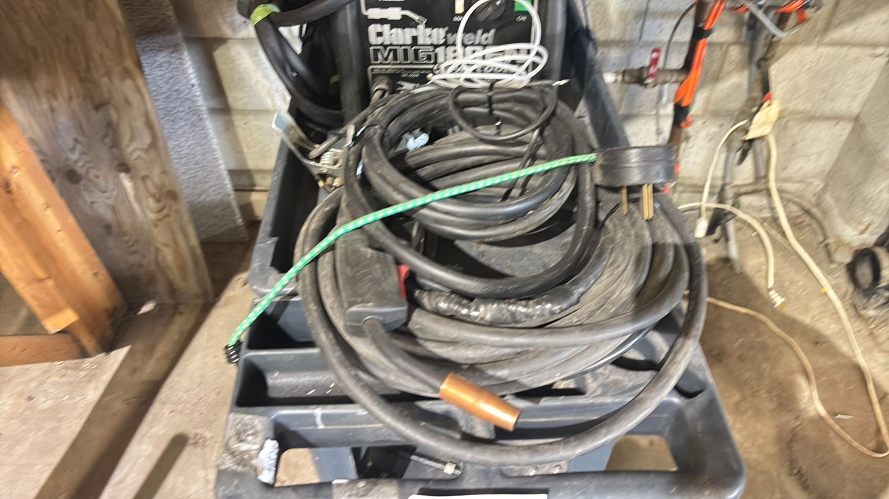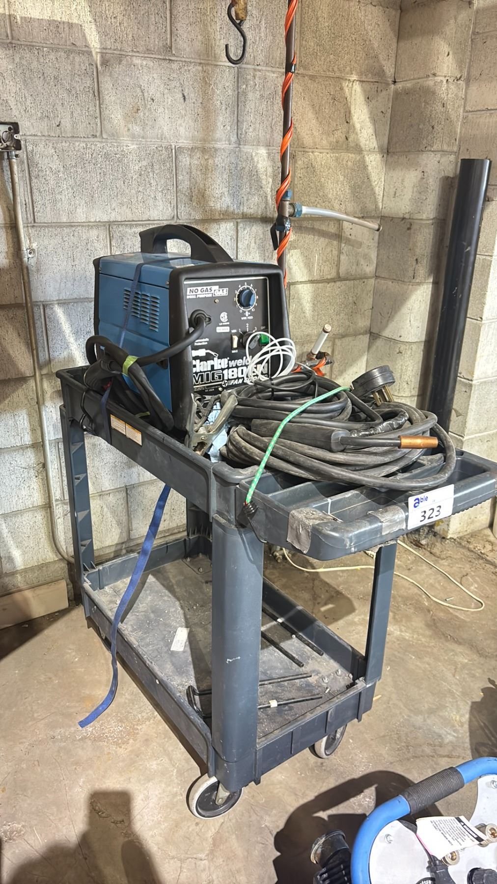 CLARKE WELD MIG WELDER 180EN WITH TORCH & HOSES ON PORTABLE 2 TIER CART