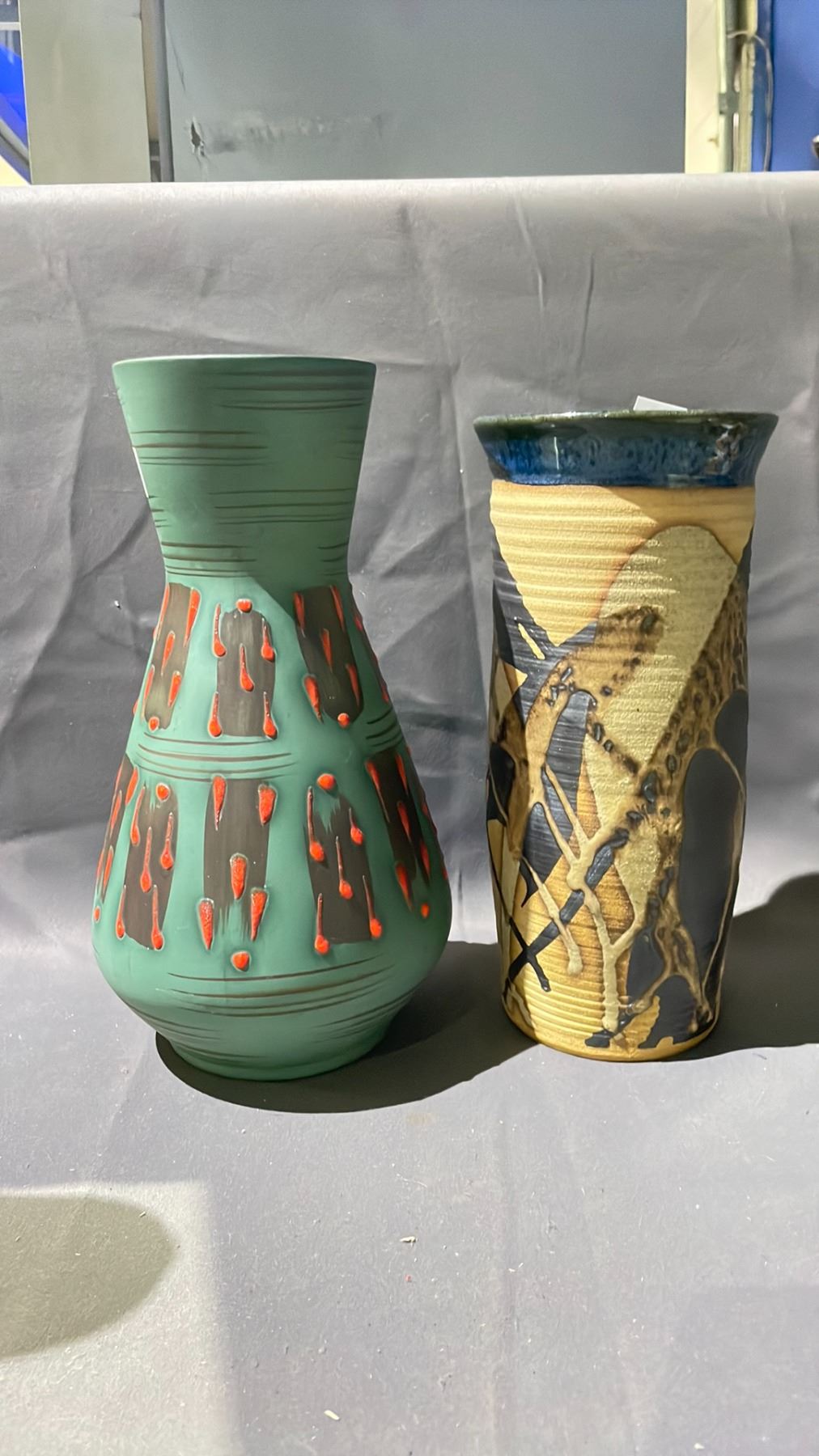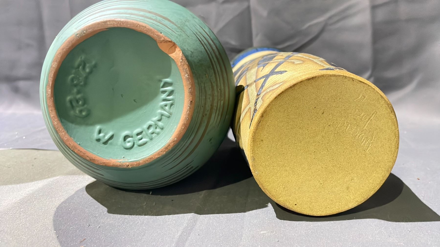 CLAY VASE BY ANDREW LOCO & VASE MADE IN W. GERMANY