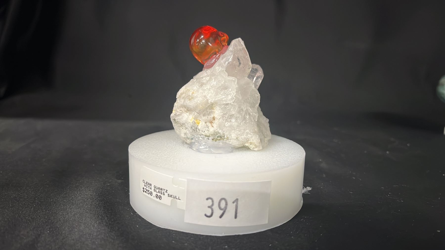CLEAR QUARTZ WITH GLASS SKULL (SKULL DETACHED)