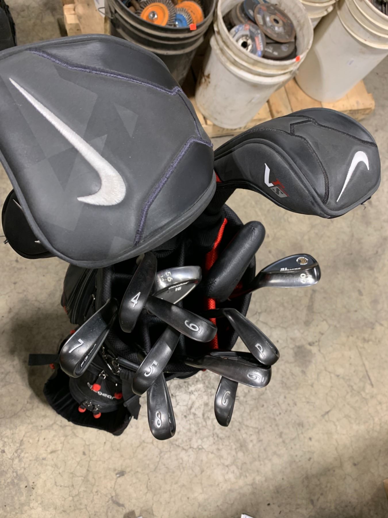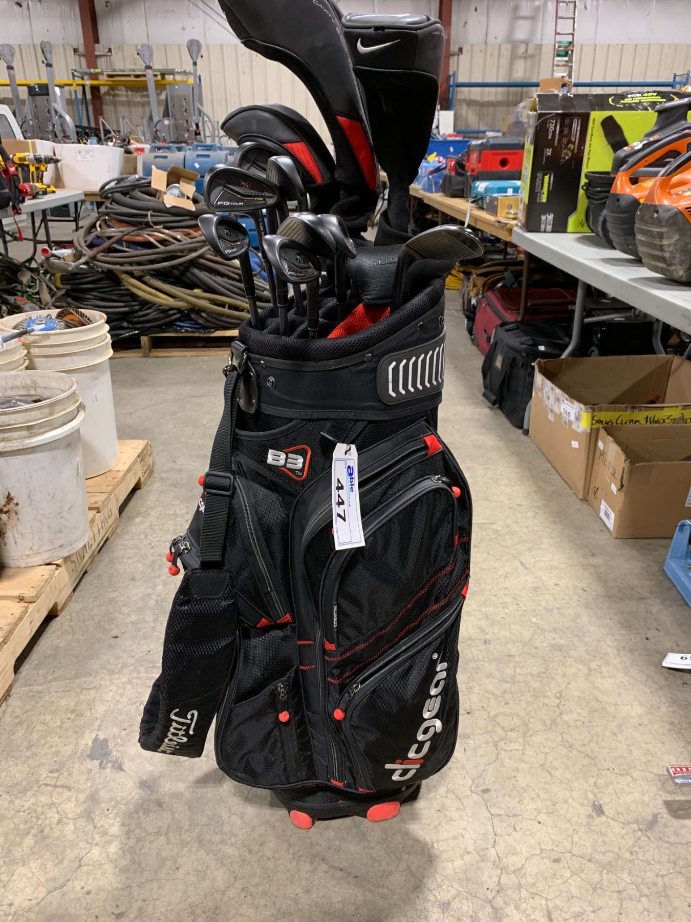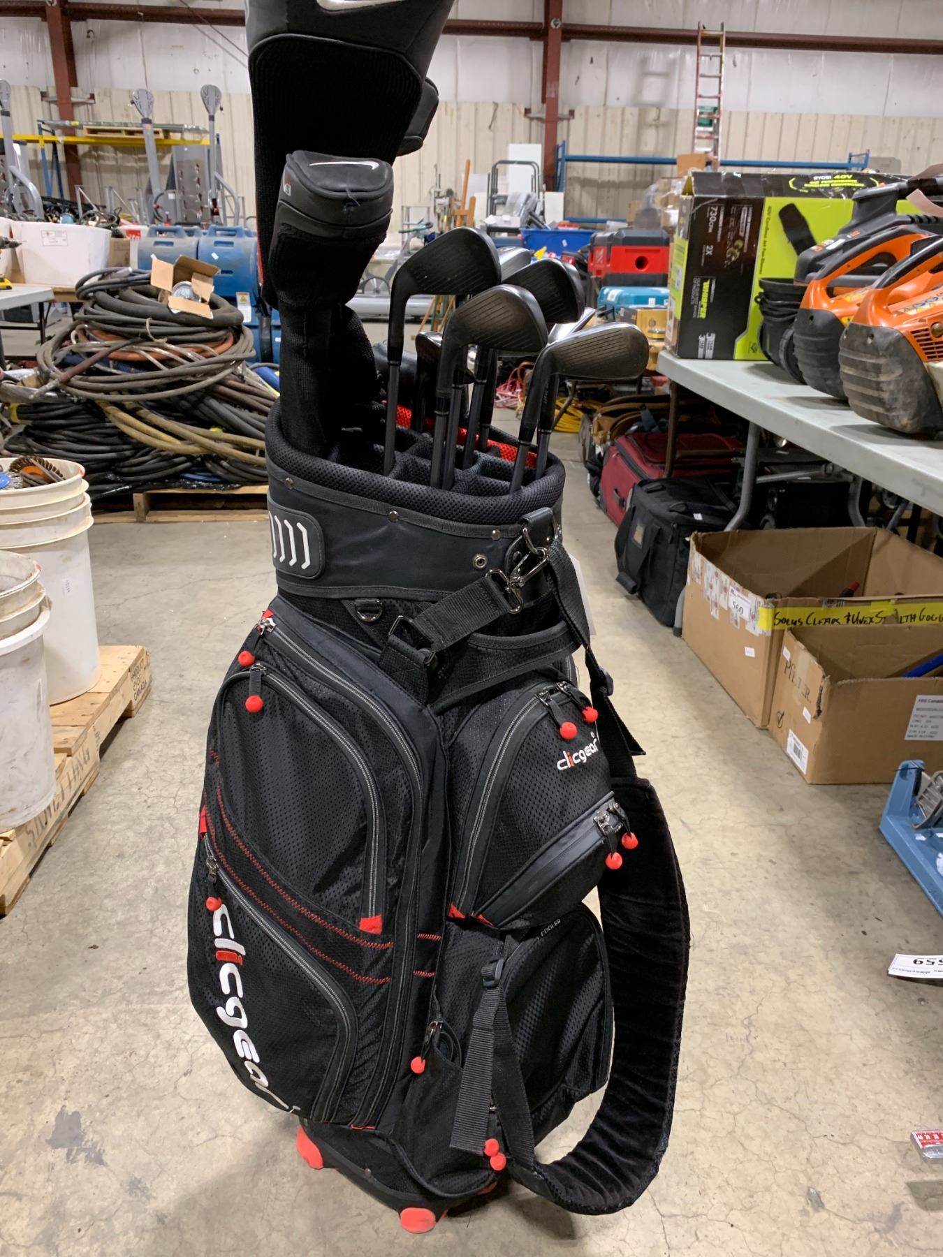 CLICGEAR GOLF BAG WITH ASSORTMENT OF APPROX 13 GOLF CLUBS