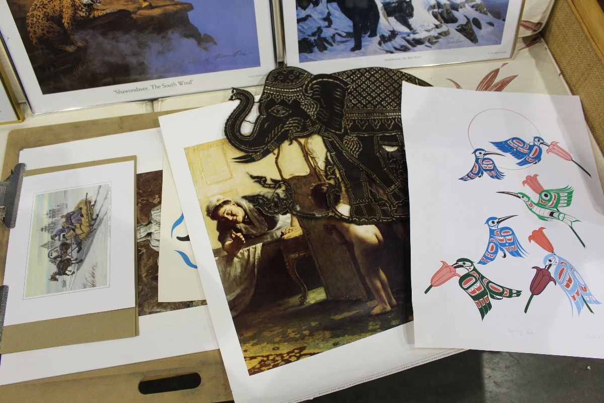 CLIP BOARD WITH NATIVE PRINTS AND OTHER PICTURES