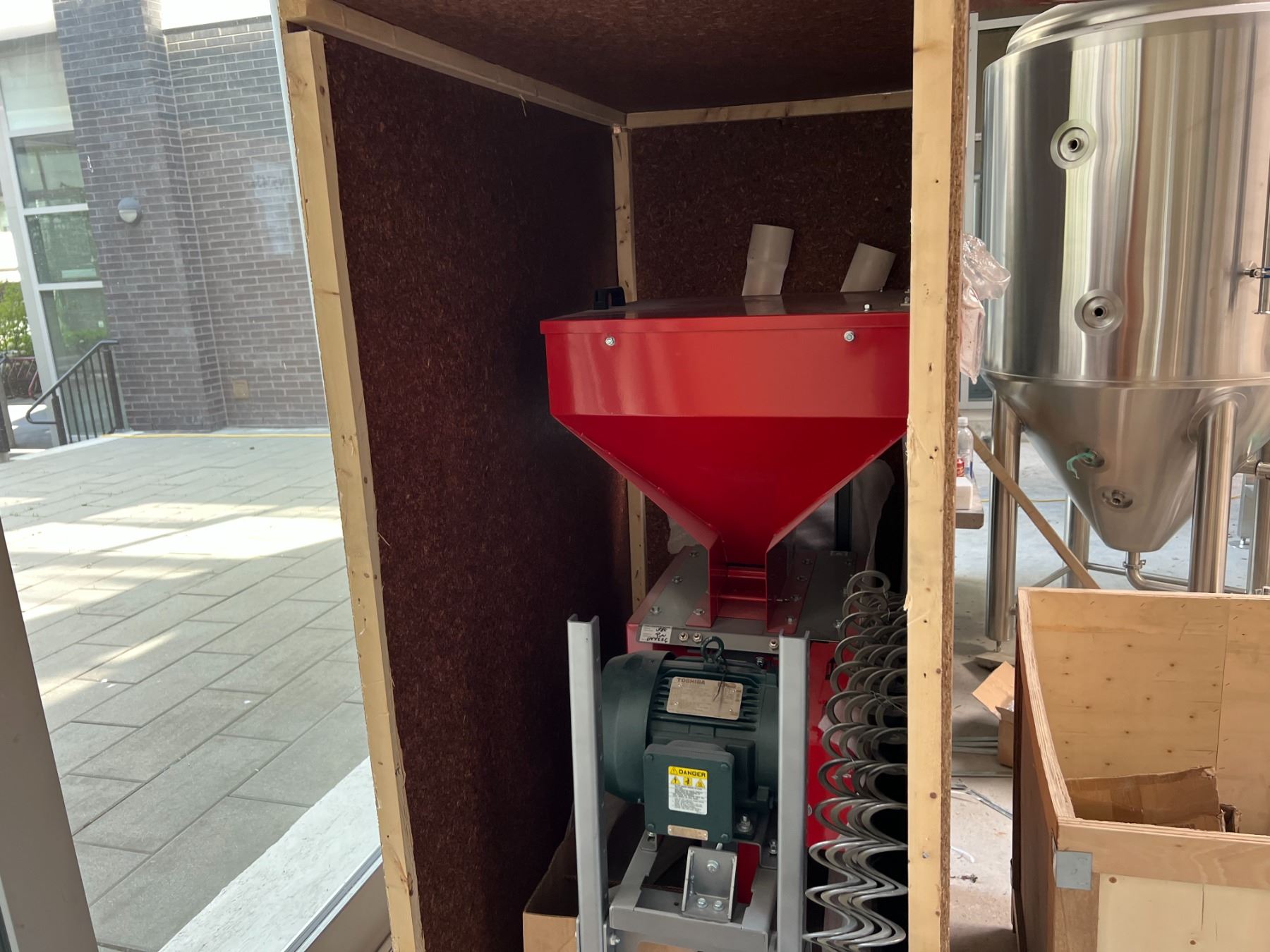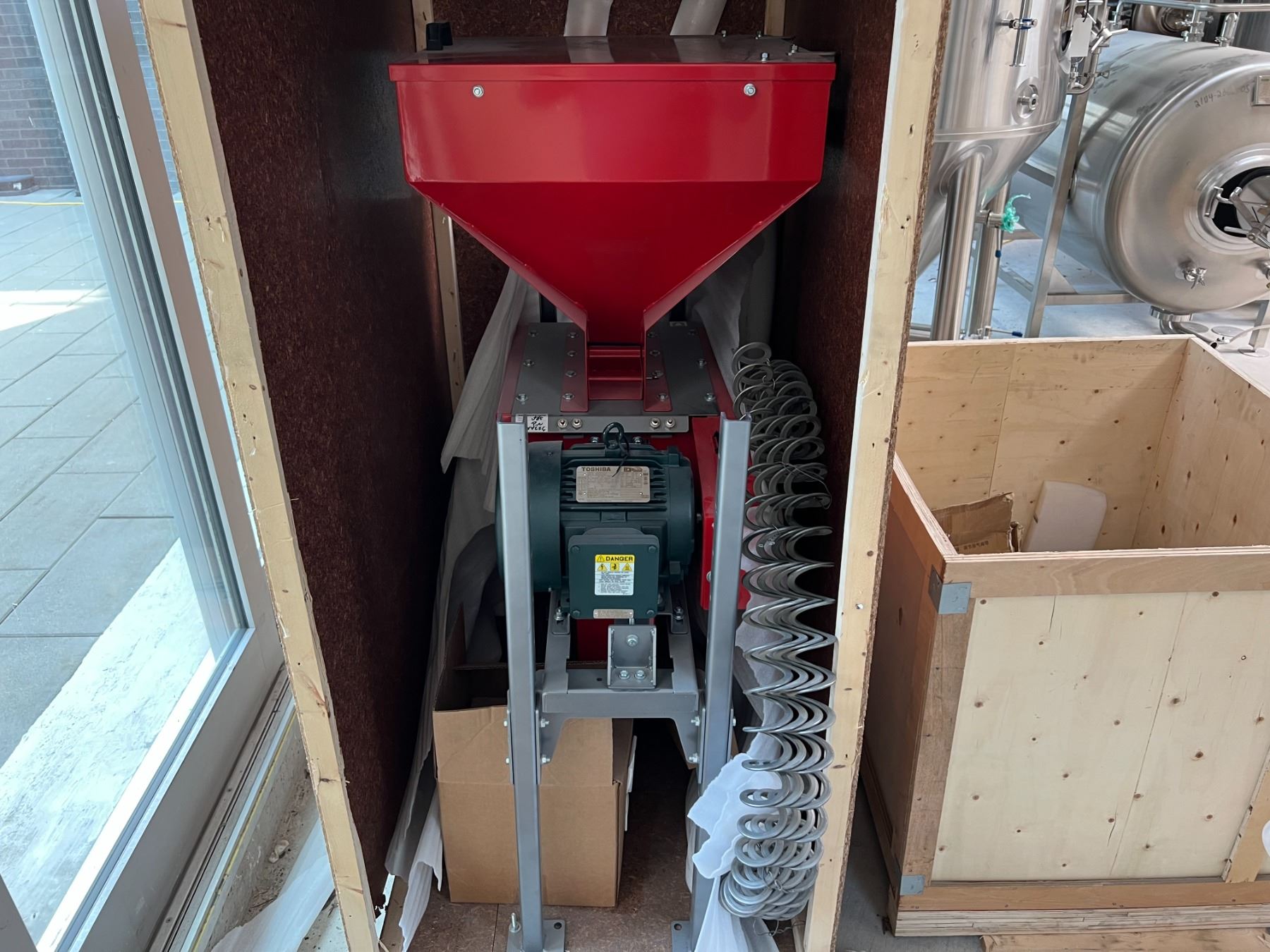 CLOUSTON CLARK GRAIN HOPPER/CRACKER WITH FLEXIBLE 3" AUGER. NEW IN CRATE. INCLUDES ALL MOTORS, FITTINGS, MANUAL ETC. RAD EQUIPMENT GRAIN CRACKER. CRATE DIMENSIONS ARE 48X32X80" HIGH. NEW IN CRATE. COST $14,000