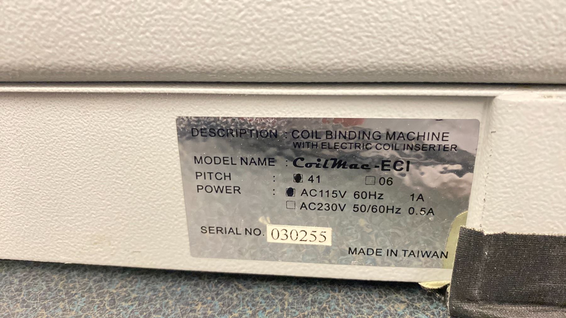 COILMAC-ECI COMMERCIAL ELECTRIC COIL INSERTER / COIL BINDING MACHINE WITH FOOT CONTROL