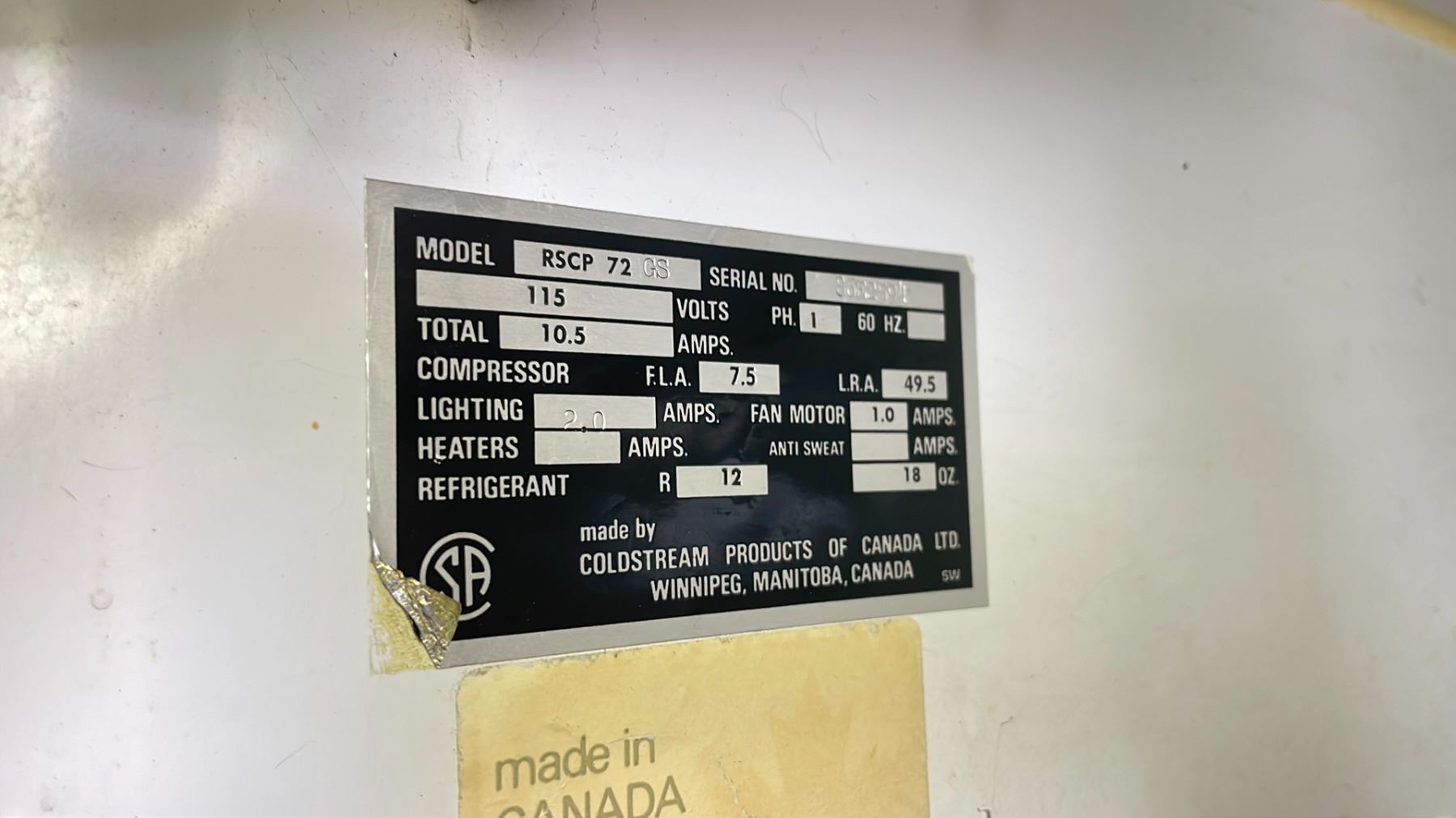 COLDSTREAM RSCP72GS SINGLE PHASE 3 DOOR GLASS FRONT COMMERCIAL PRODUCT COOLER