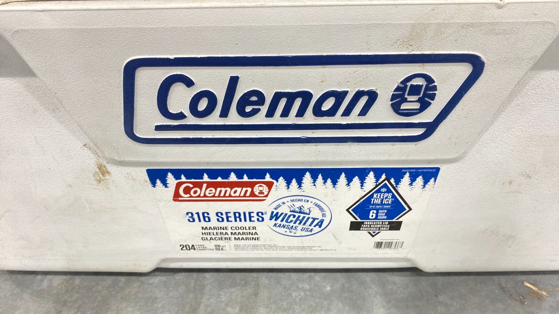 COLEMAN 316 SERIES MARINE COOLER WITH ASSORTED CONTENTS