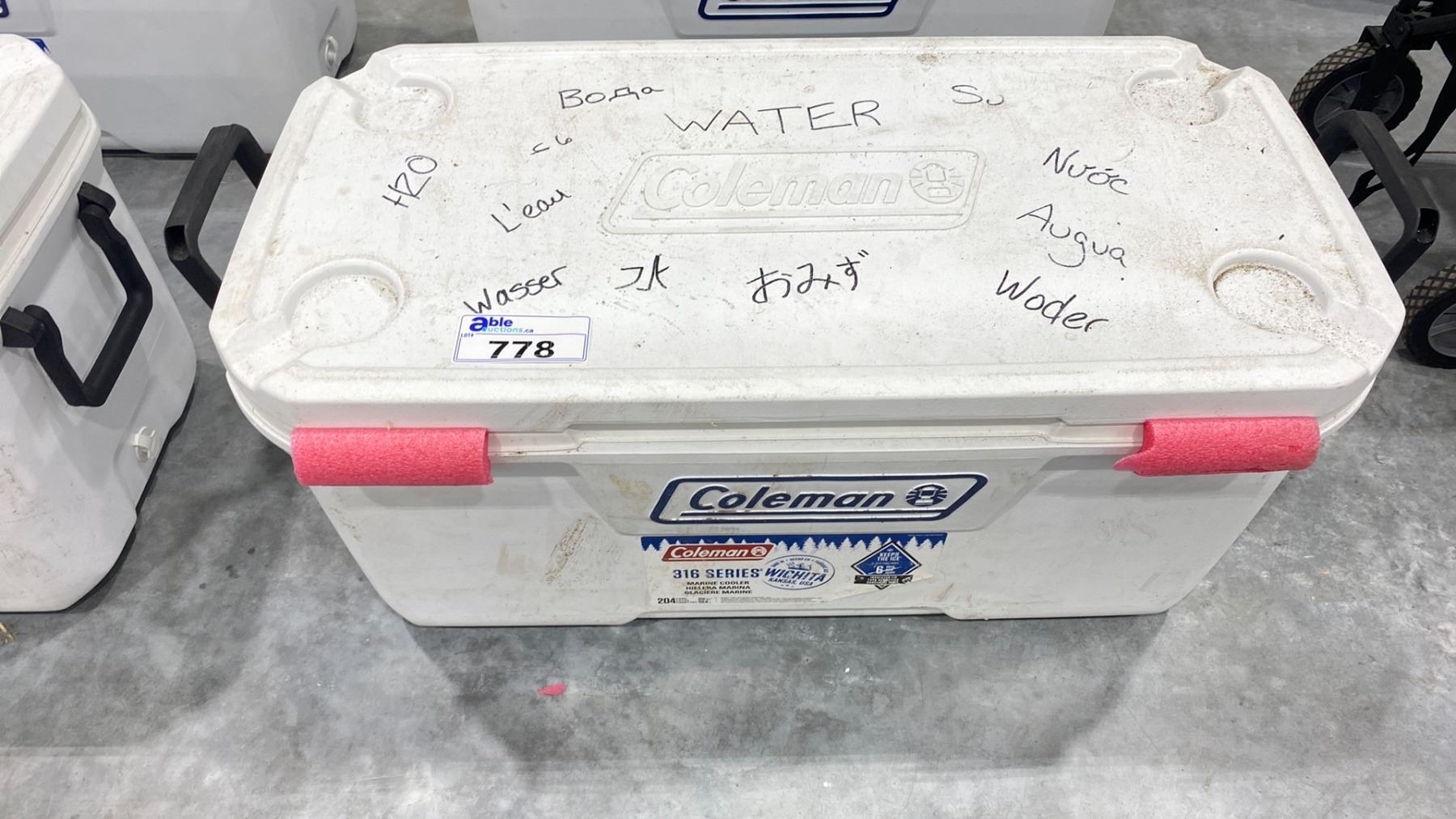 COLEMAN 316 SERIES MARINE COOLER WITH ASSORTED CONTENTS