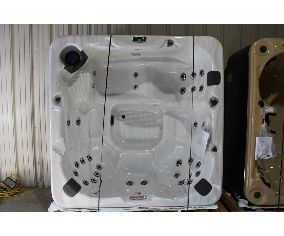 COLEMAN HERITAGE SERIES HOT TUB, 7.5' PREFERRED MIST CABINET WITH STERLING SILVER INTERIOR C/W 31 SS STAR FIRE JETS, 3 PILLOWS, 50 SQ FT SURFACE FILTER WITH WIER GATE, GATE VALVE, 5.5 KW HEATER, 5 BHP 2 SPD PUMP, LED SPA LIGHT, LED WATERFALL WITH CONTROL