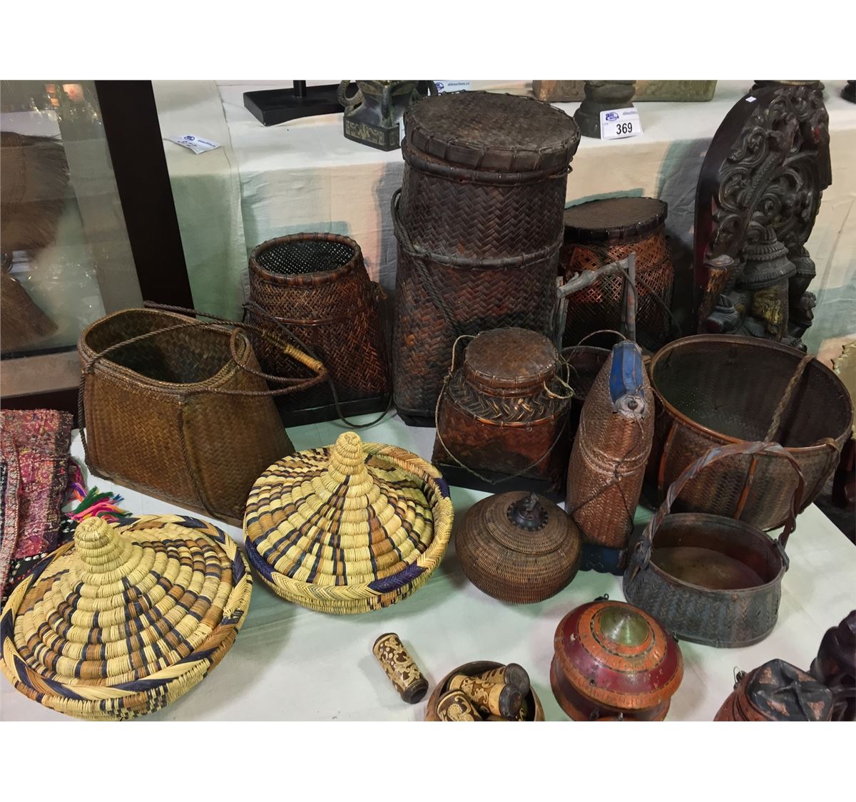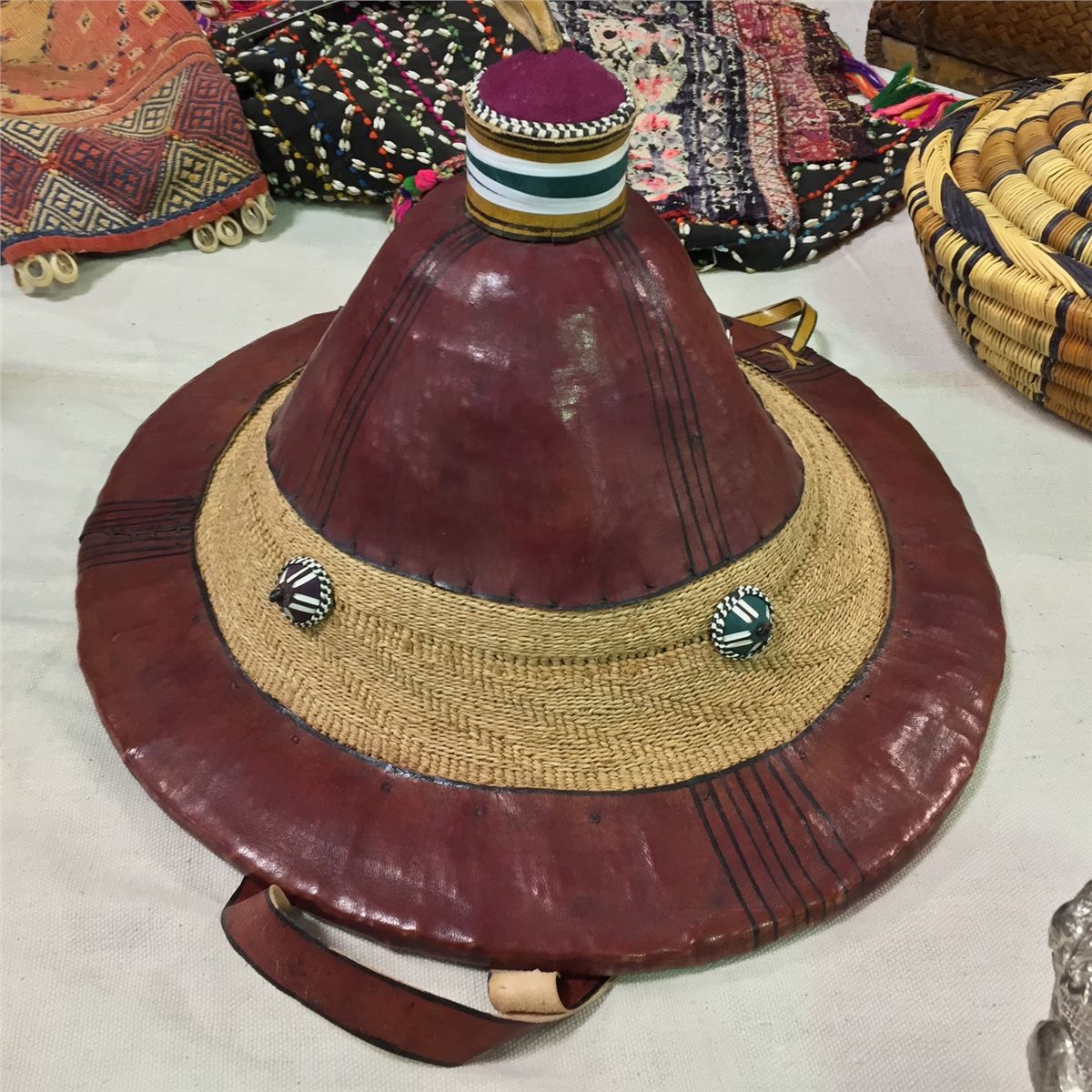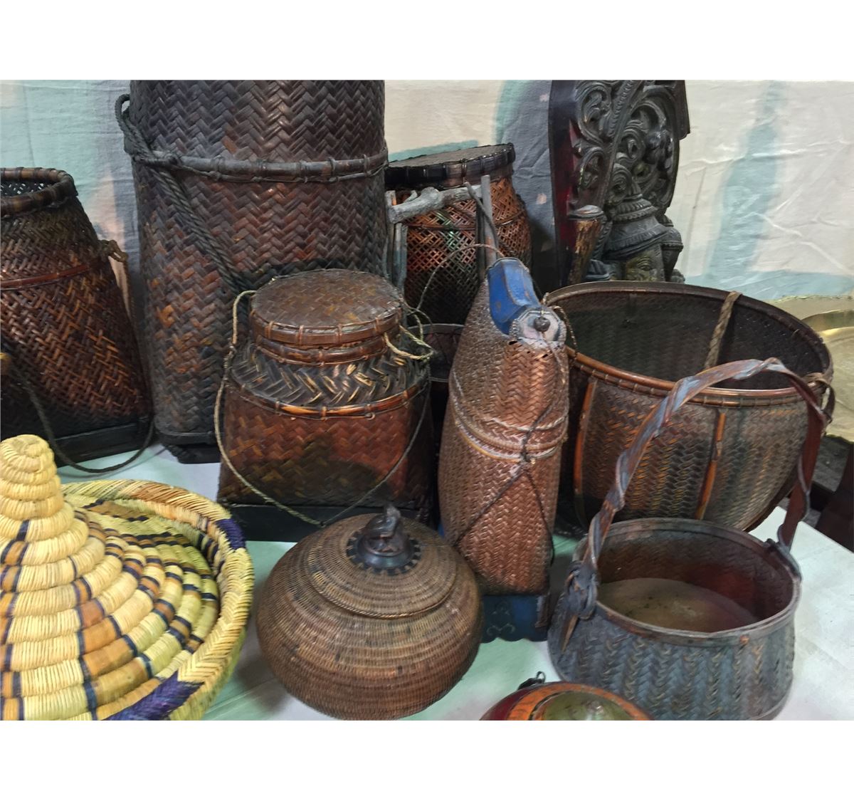COLLECTION OF 12 ASSORTED TIBETAN BASKETS AND ONE HAT