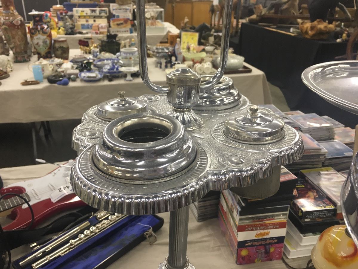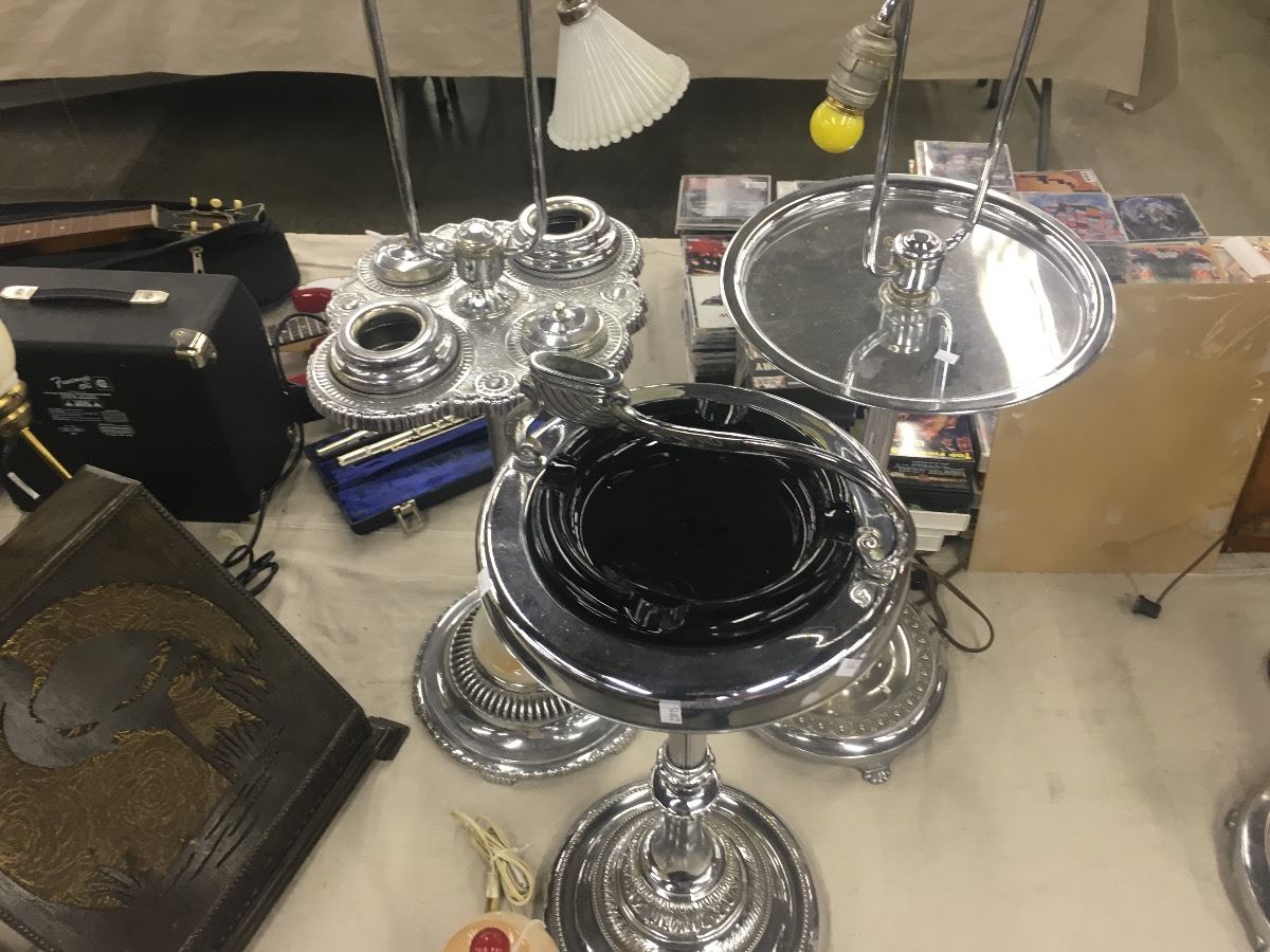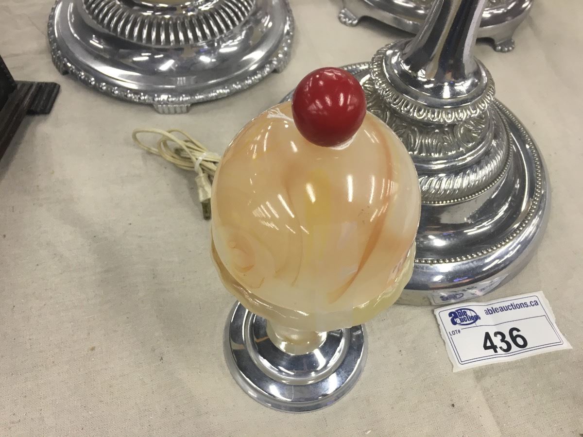 COLLECTION OF 1950S ASHTRAYS AND DRINK STANDS AND SODA FOUNTAIN STYLE LIGHT-UP GLASS LAMP