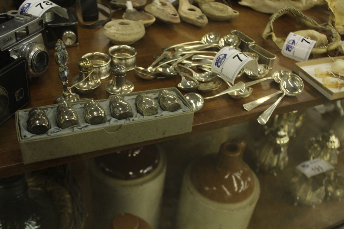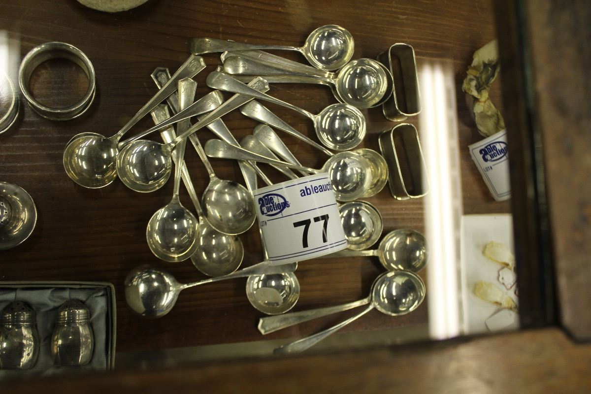 COLLECTION OF 25+ PIECES OF STERLING SILVER INC. SPOONS, SALT AND PEPPER SHAKERS AND MORE