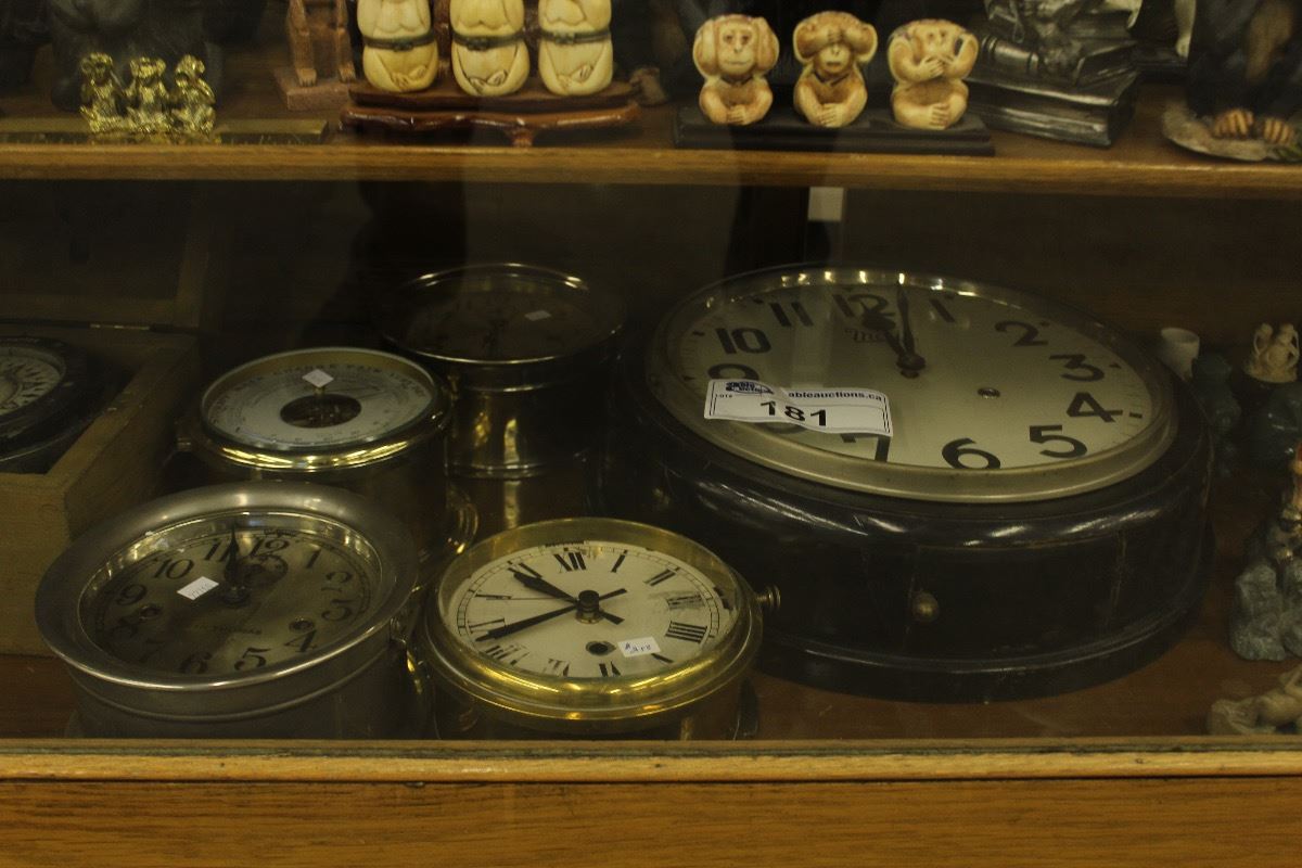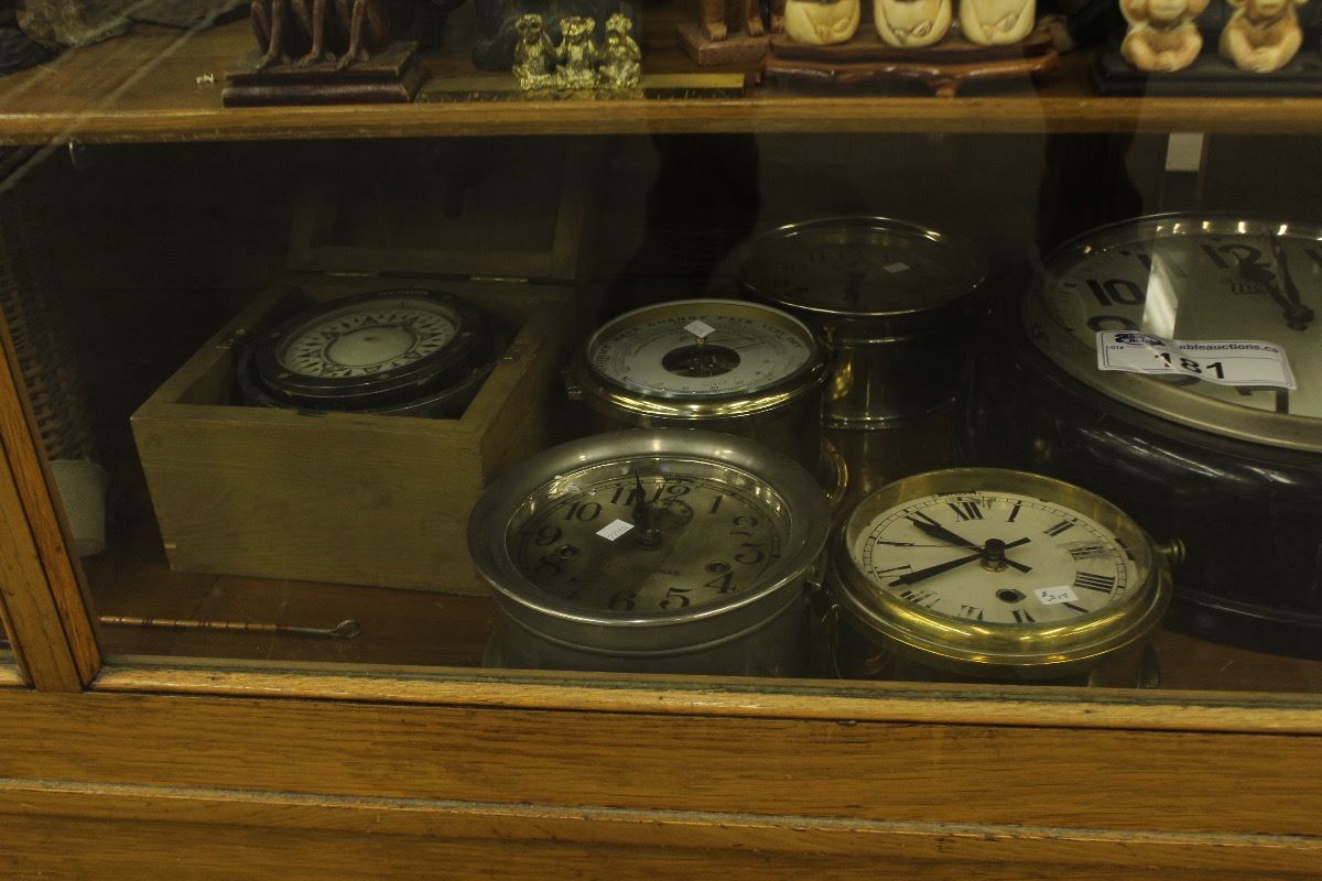 COLLECTION OF 6 CLOCKS INC. MARINE CLOCKS, BAROMETERS AND COMPASSES