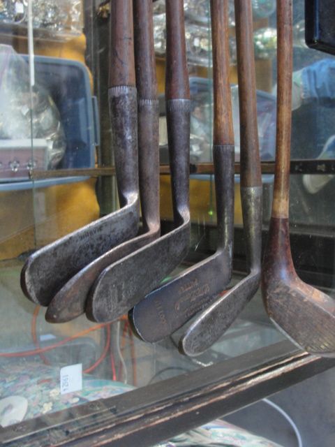 COLLECTION OF 6 VINTAGE HICKORY SHAFT LEFT HANDED GOLF CLUBS