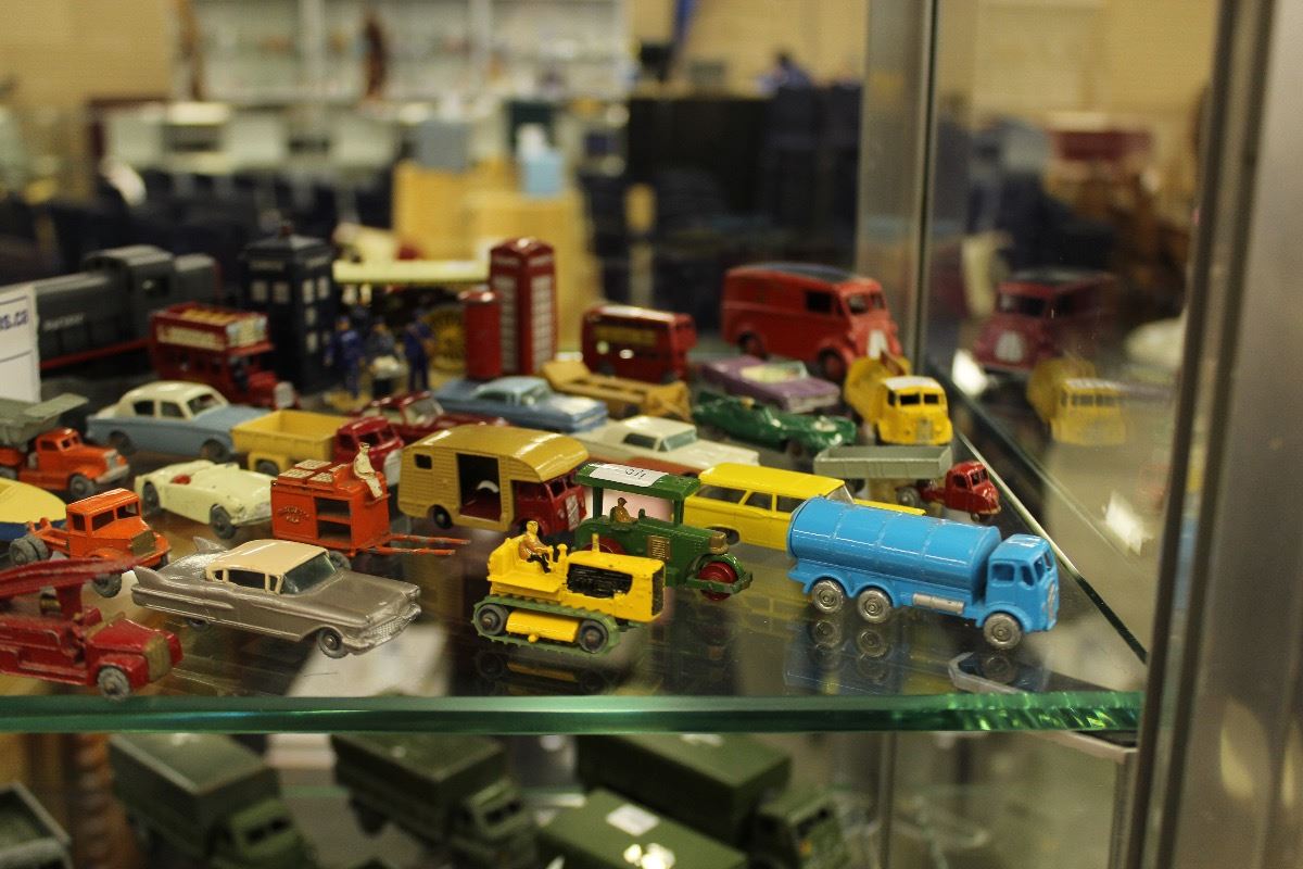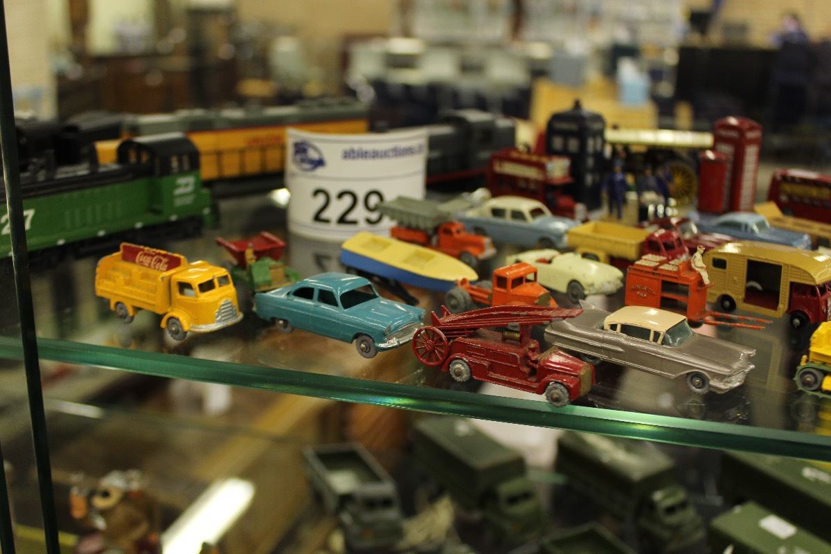 COLLECTION OF APPROX. 20 LESNEY AND MATCHBOX CAST CAR TOYS AND 6 H.0. SCALE TRAINS