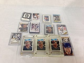 COLLECTION OF APPROX 75 BRETT HULL HOCKEY CARDS INCLUDING A SIGNED STUDIO CARD & AN UPPER DECK CARD SIGNED BY GORDIE HOWE