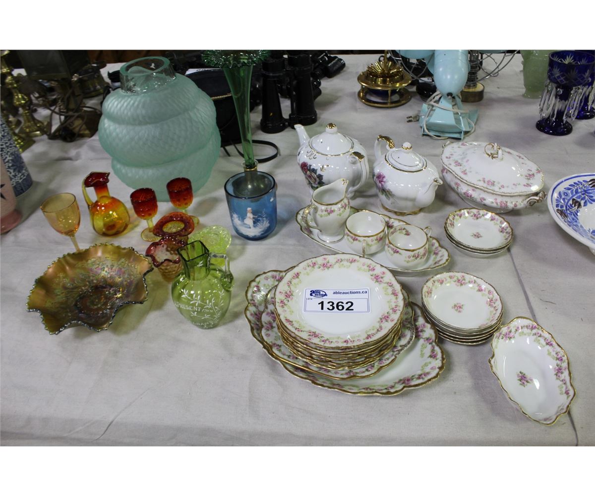 COLLECTION OF: ART GLASS, AND LIMOGES BONE CHINA TEA SERVICE
