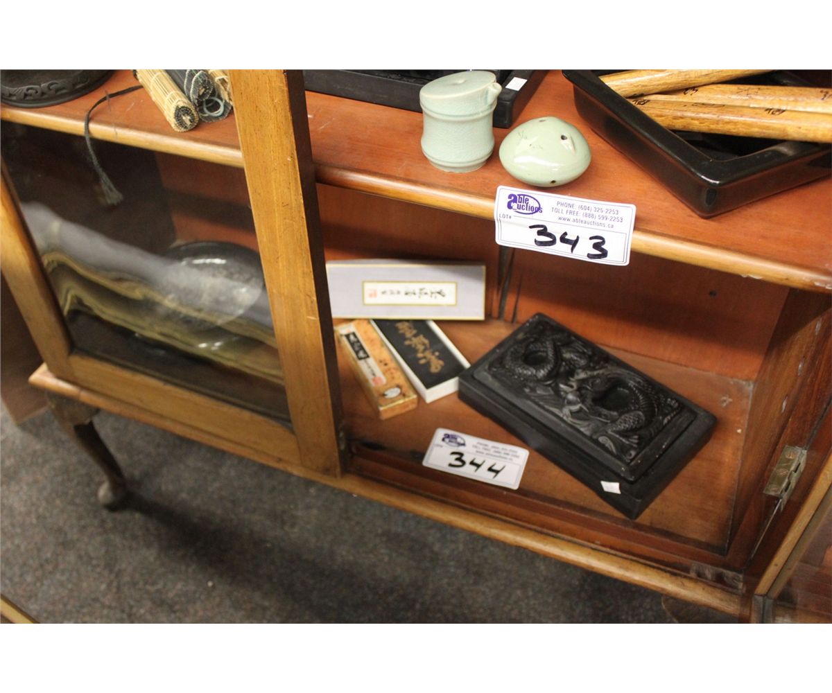 COLLECTION OF ASIAN INK STAMPS & DRAGON ORNAMENT