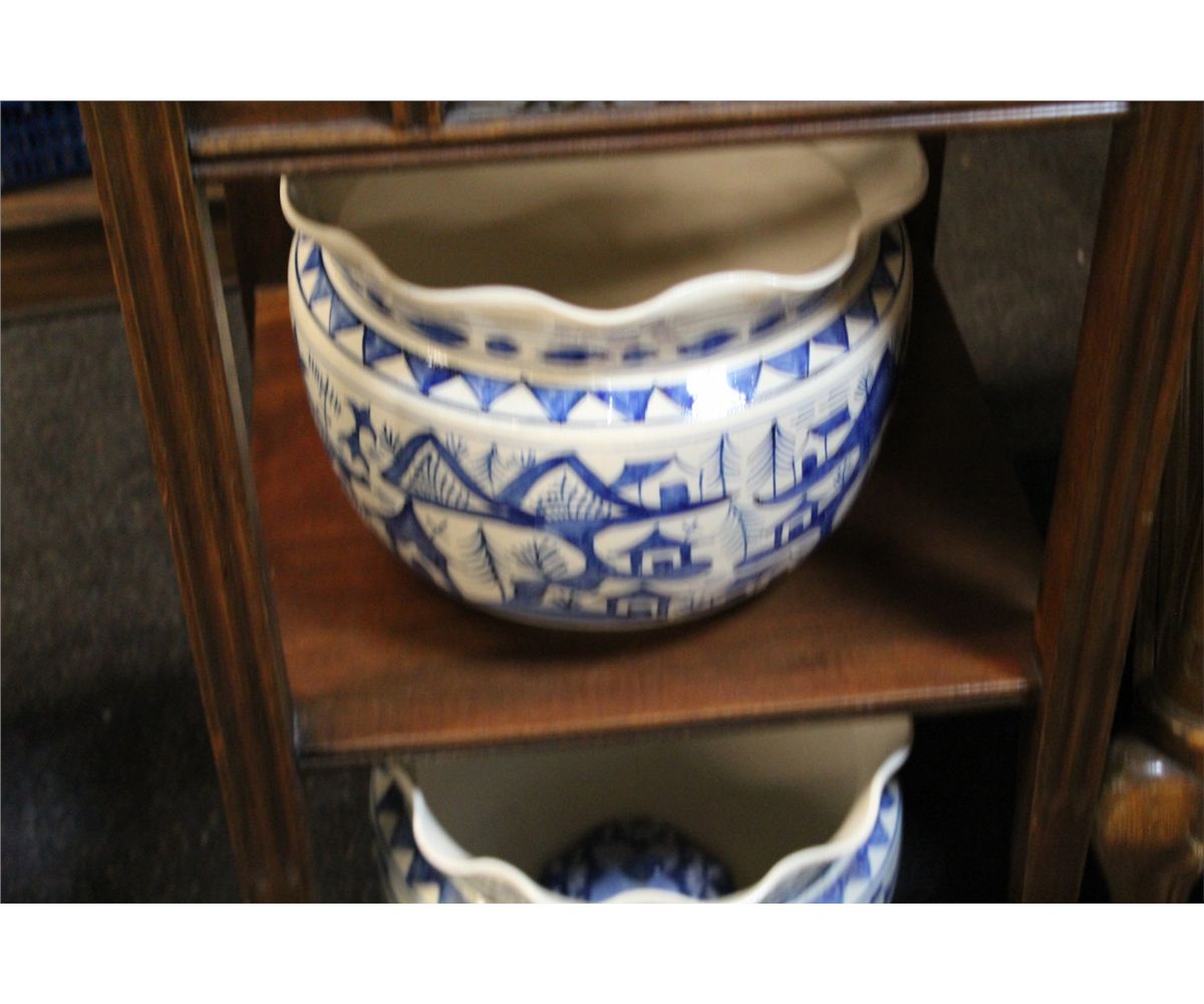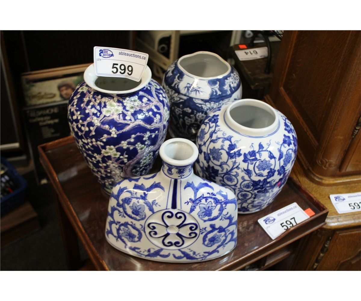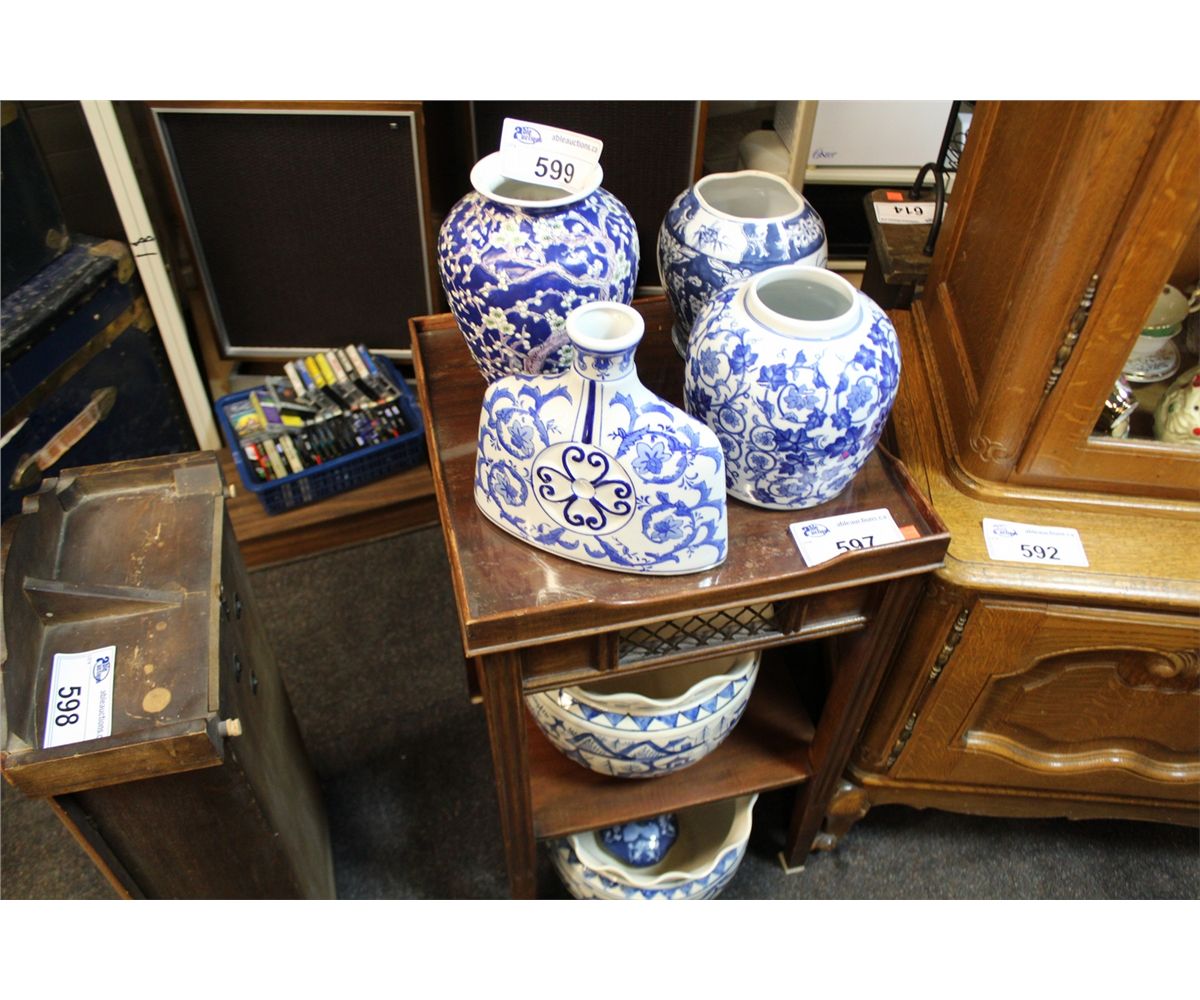 COLLECTION OF BLUE AND WHITE CERAMIC POTS AND VASES