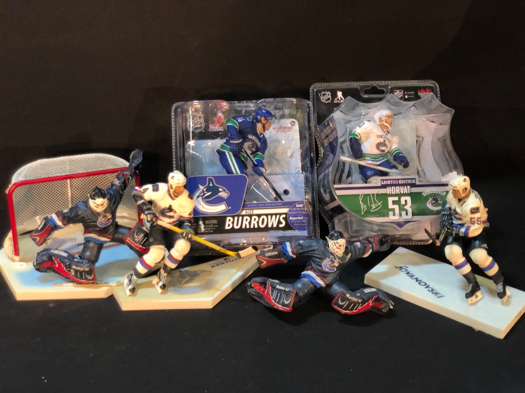 COLLECTION OF CANUCKS FIGURINES INC. ED JOVANOSKI, DAN CLOUTIER, TODD BERTUZZI, ALEX BURROWS AND BO HORVAT