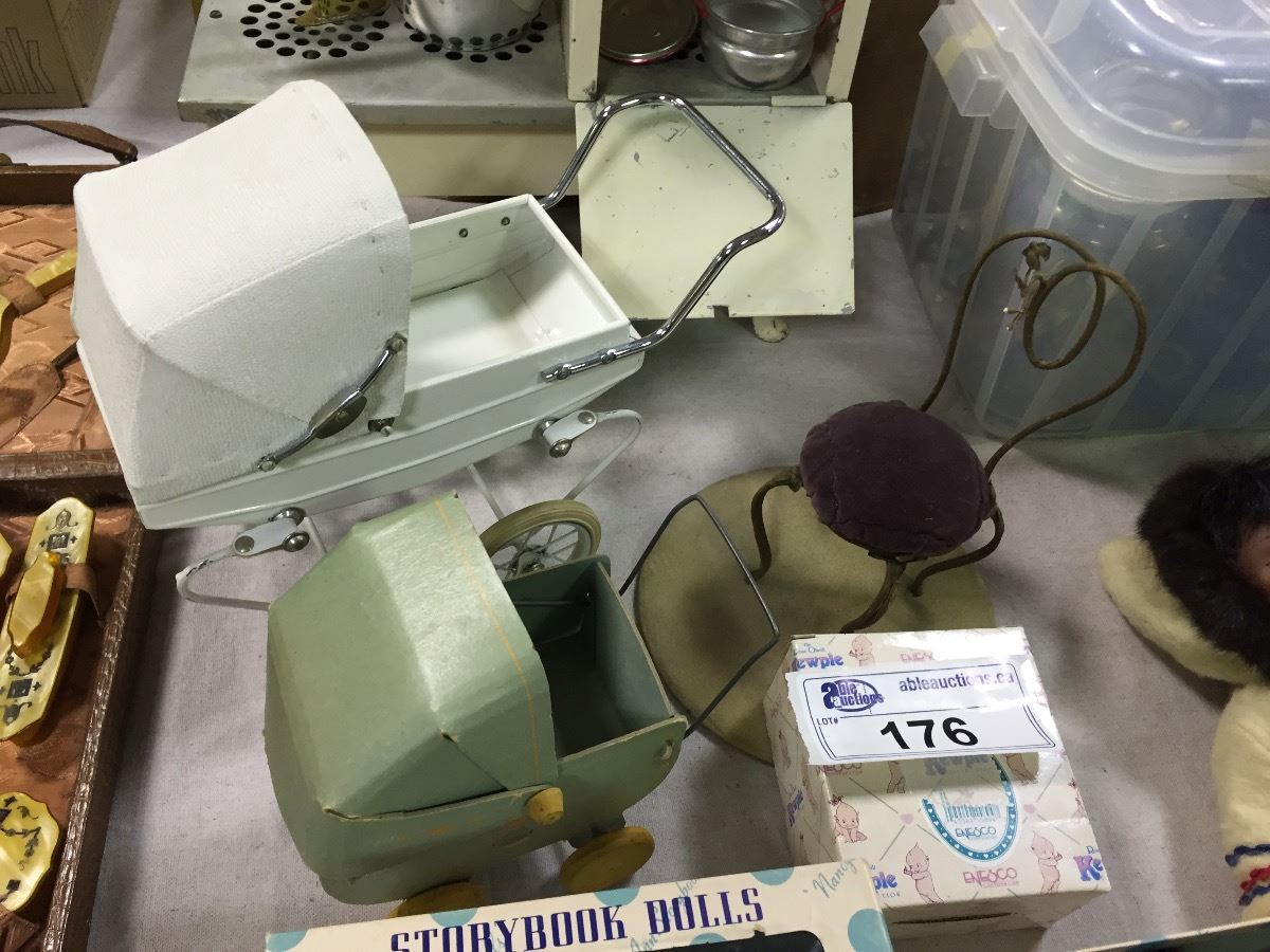 COLLECTION OF: CHILDRENS TOYS, BABY CARRIAGES, DOLLS, AND MARBLES