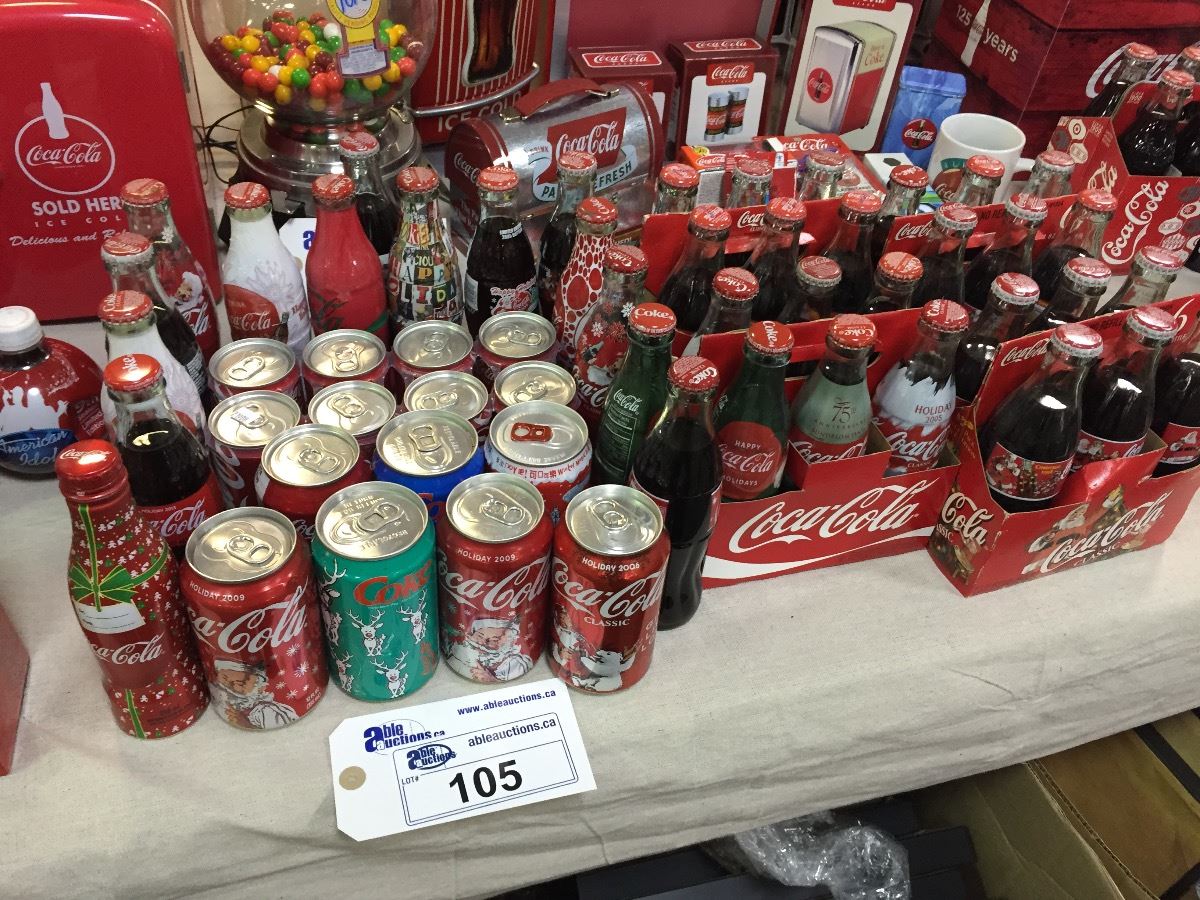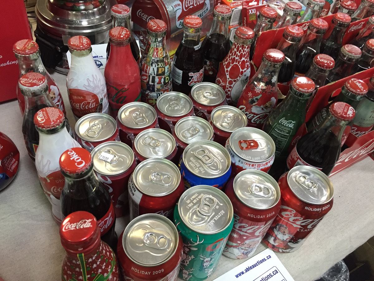 COLLECTION OF COCA COLA BOTTLES AND CANS INCLUDING AMERICAN IDOL SEASONS 1-3, CHRISTMAS OVER THE YEARS, SEALS COLLECTORS EDITION, VANCOUVER OLYPMICS AND MORE!