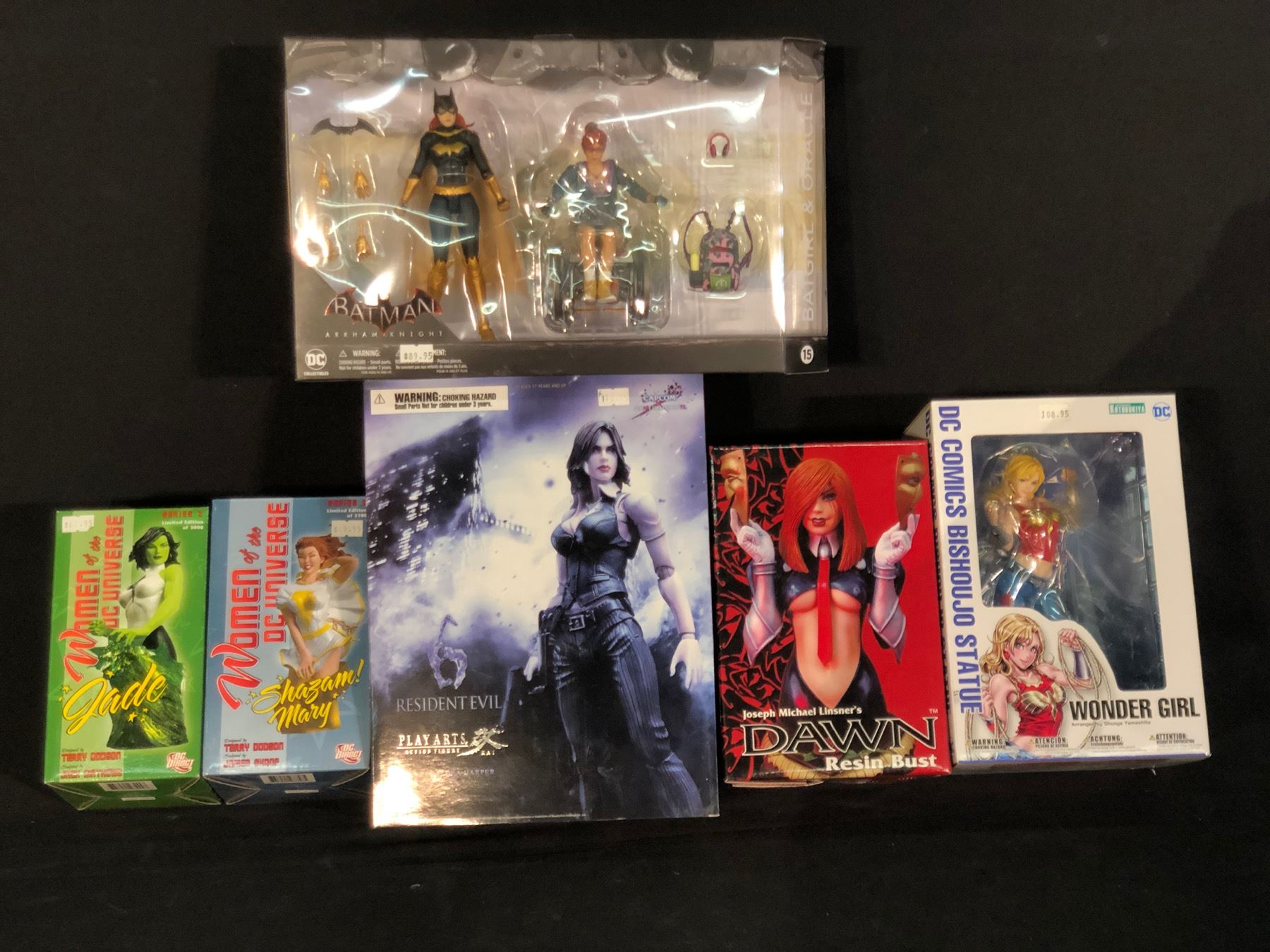 COLLECTION OF FIGURINES INC. BATGIRL & ORACLE, JADE, SHAZAM MARY, DAWN, WONDER GIRL AND HELENA HARPER