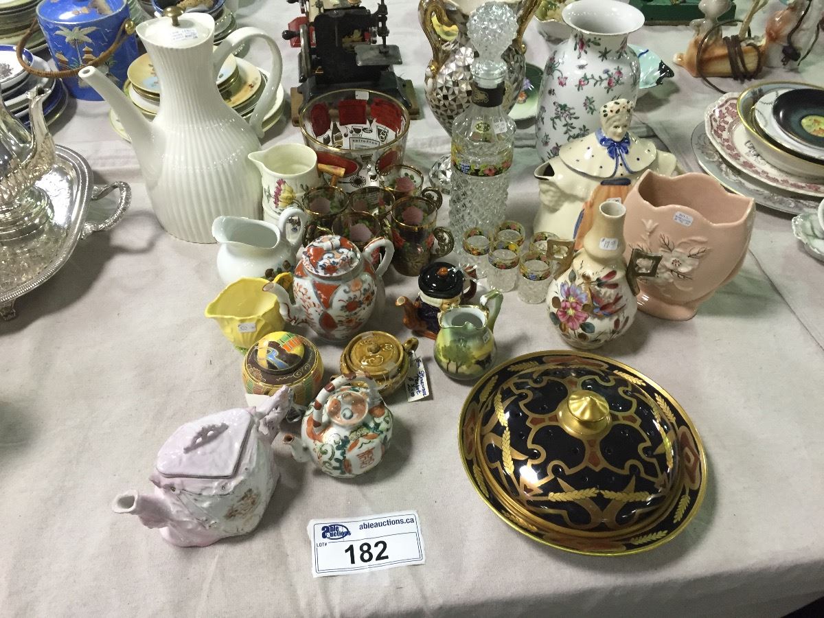 COLLECTION OF: ITALIAN GLASS, PORCELAIN VASES, TEA POTS AND MORE