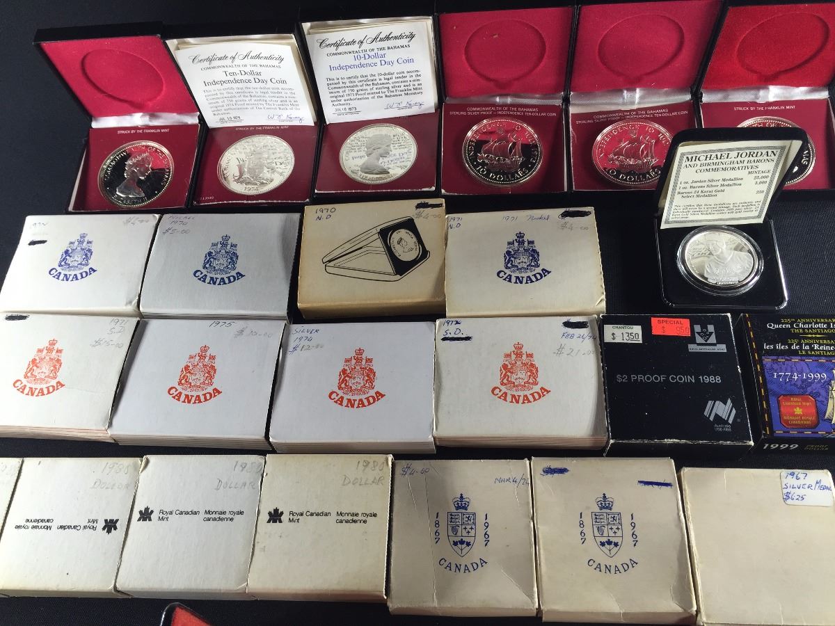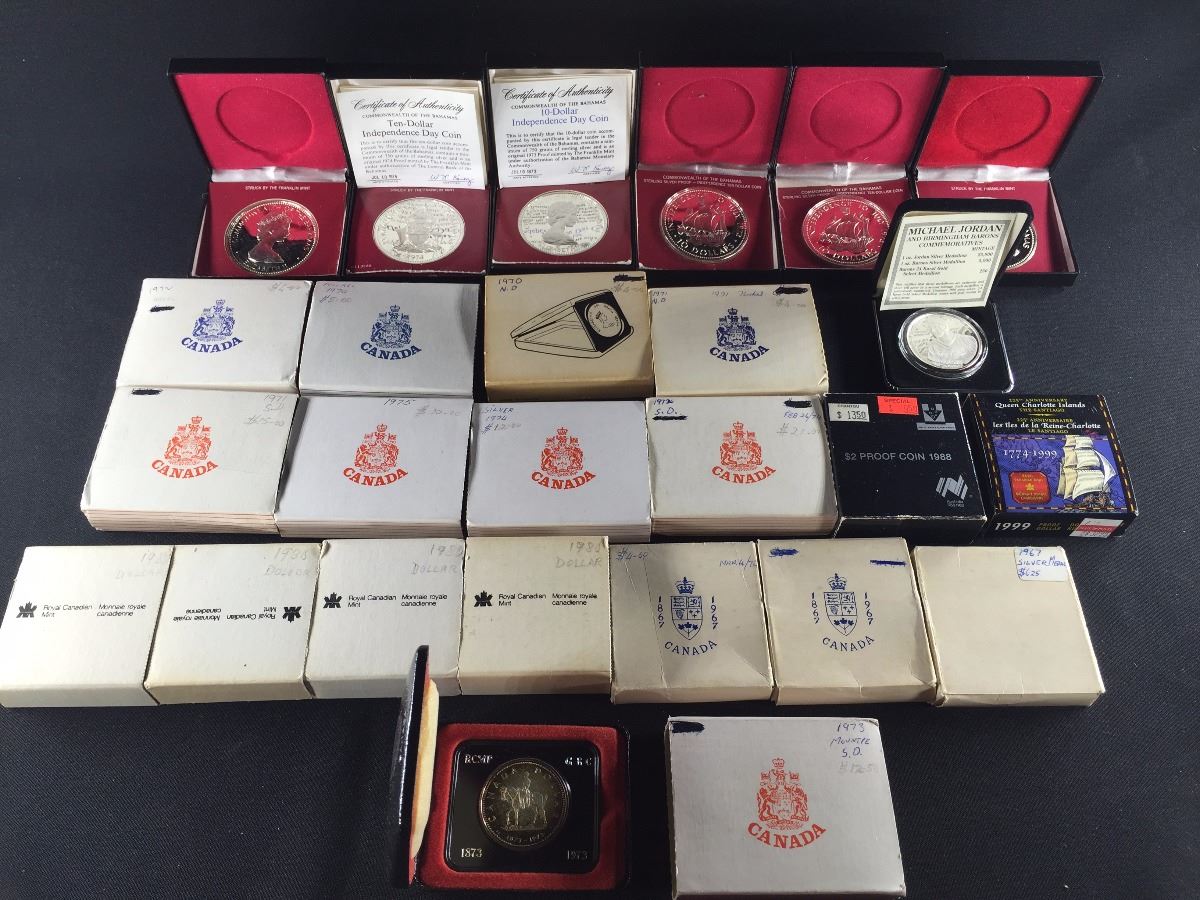 COLLECTION OF MOSTLY CANADIAN PROOF COINS INCL. SILVER $1 COINS AND MORE!