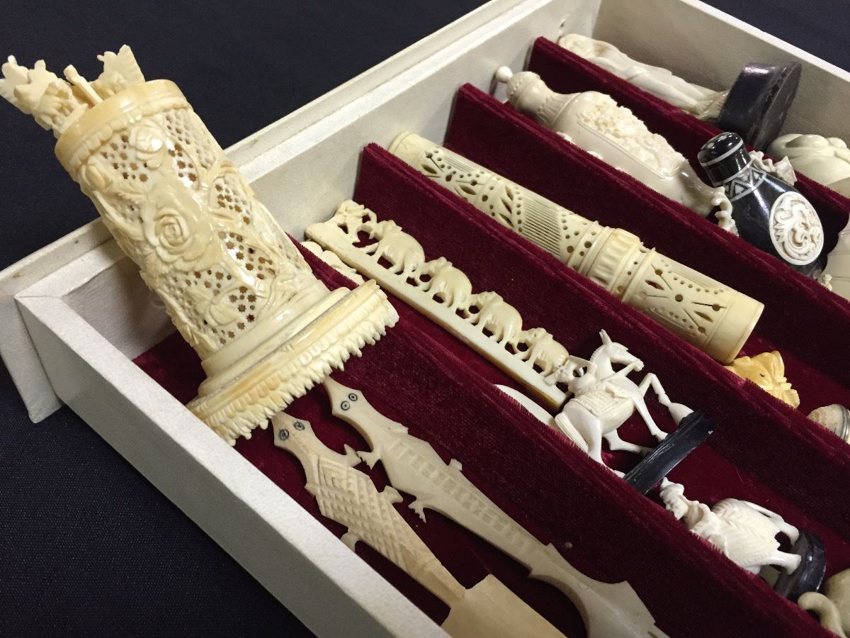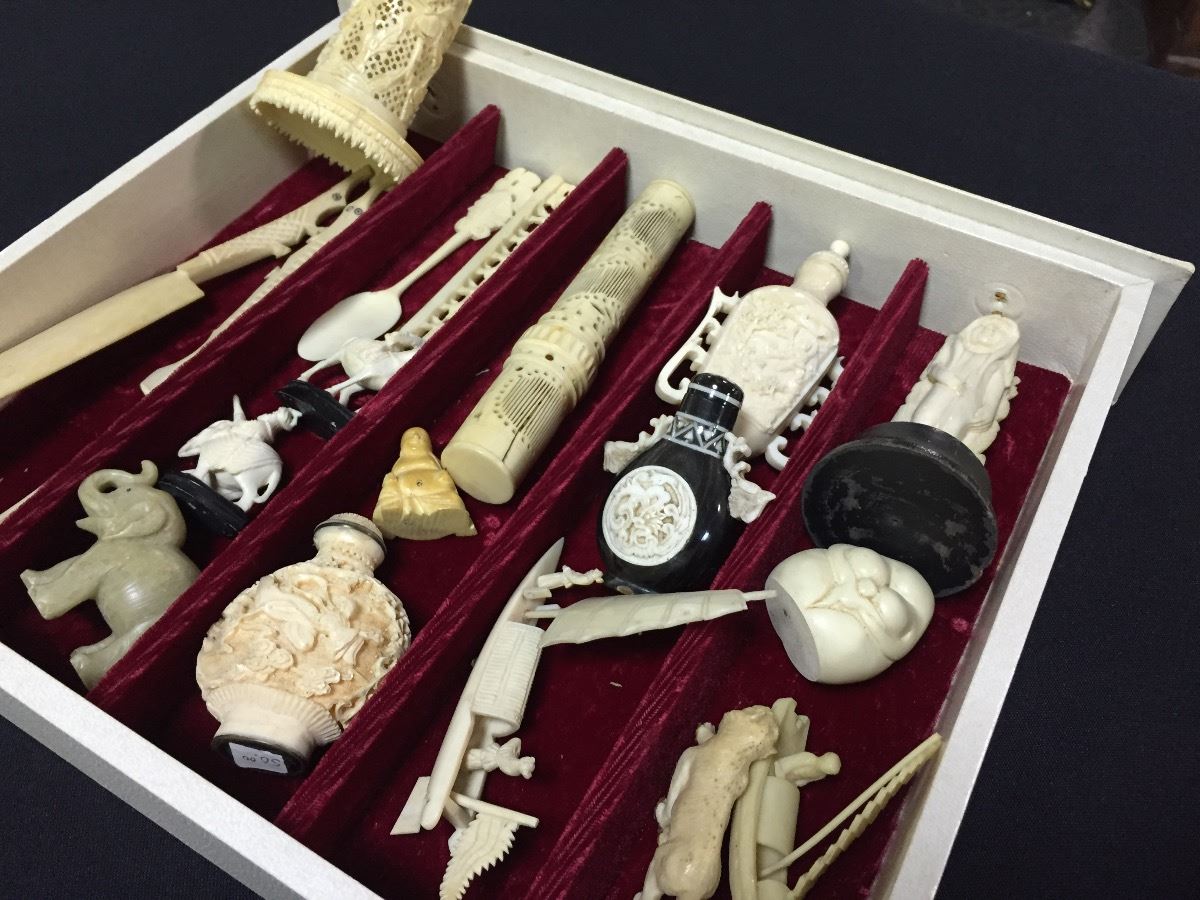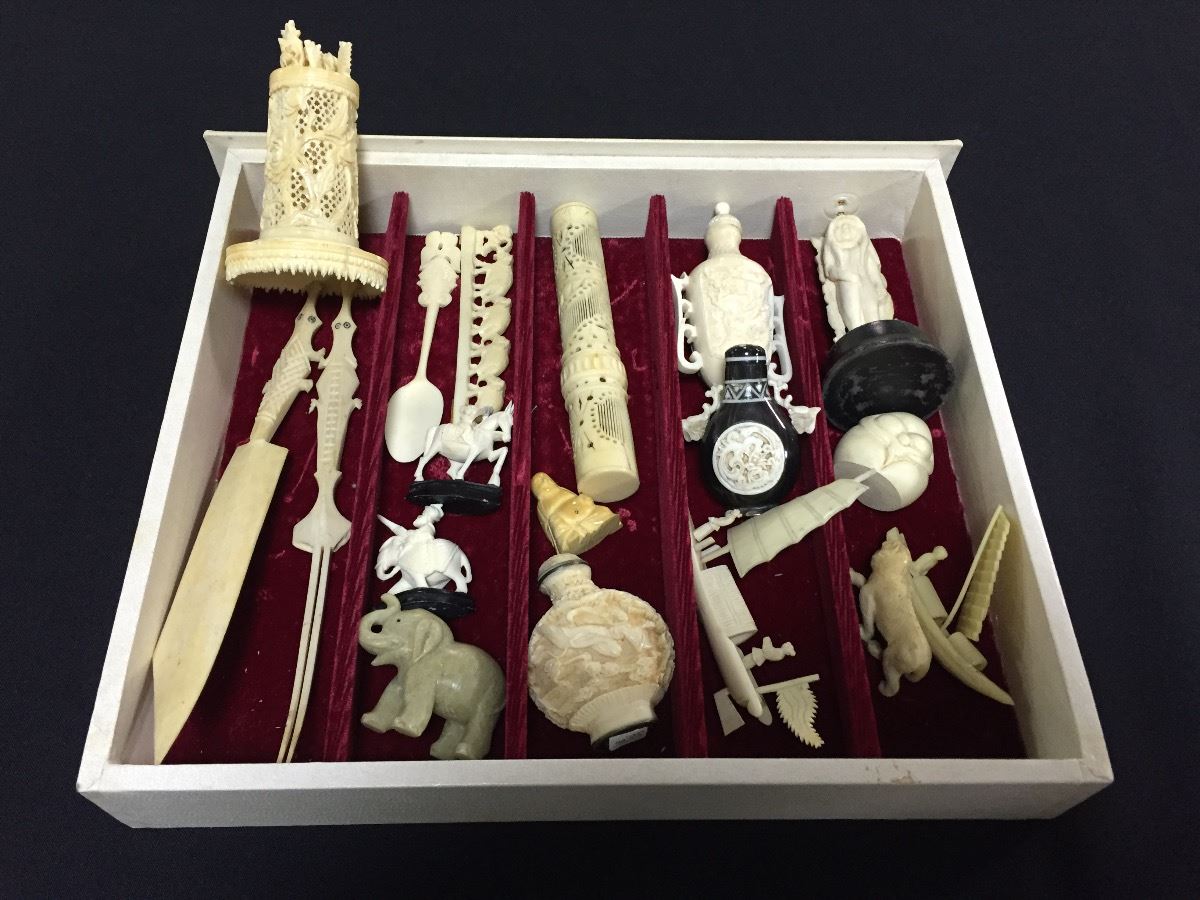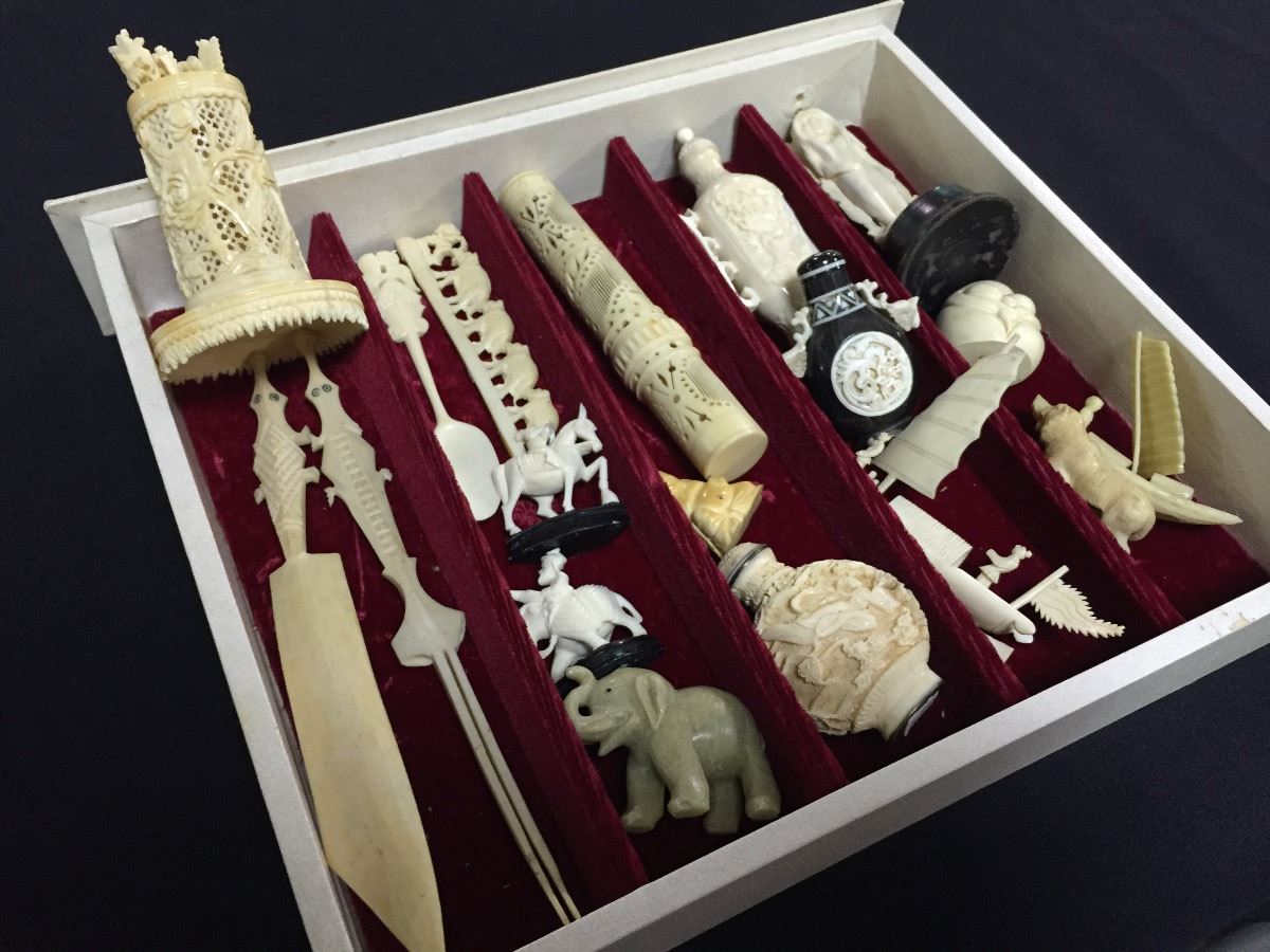 COLLECTION OF ORNATELY CARVED SMALL ANTIQUE IVORY & BONE FIGURINES
